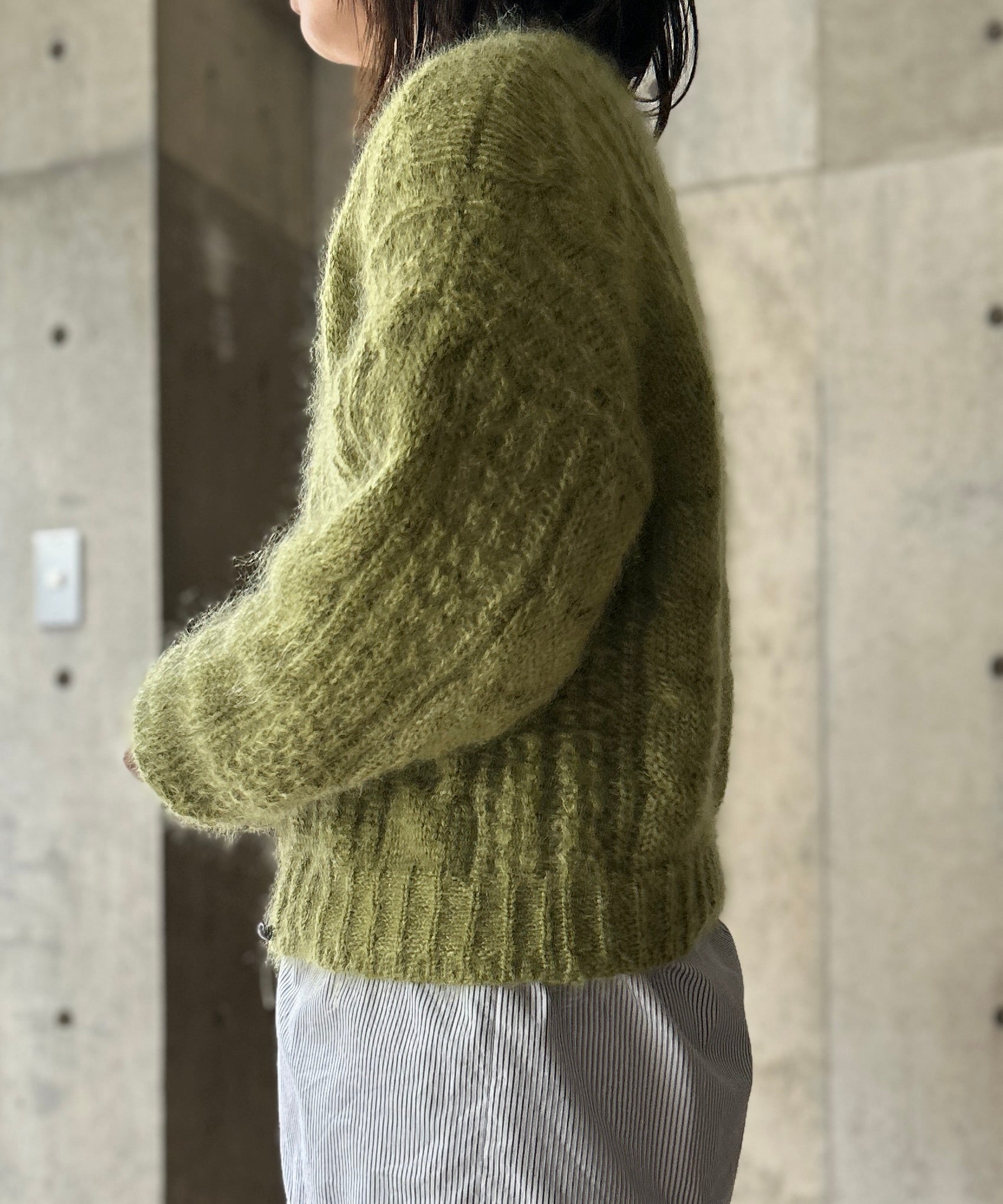 フワフワのモヘアニットカーディガン。