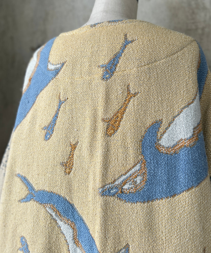 ラグ生地のノーカラージャケット。