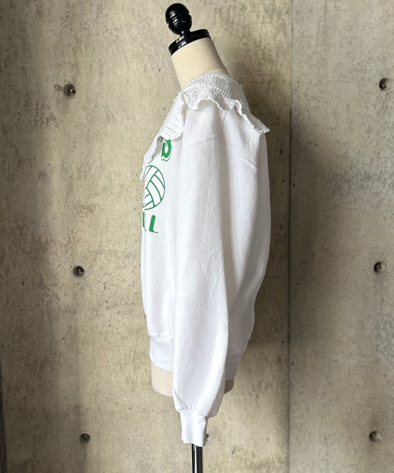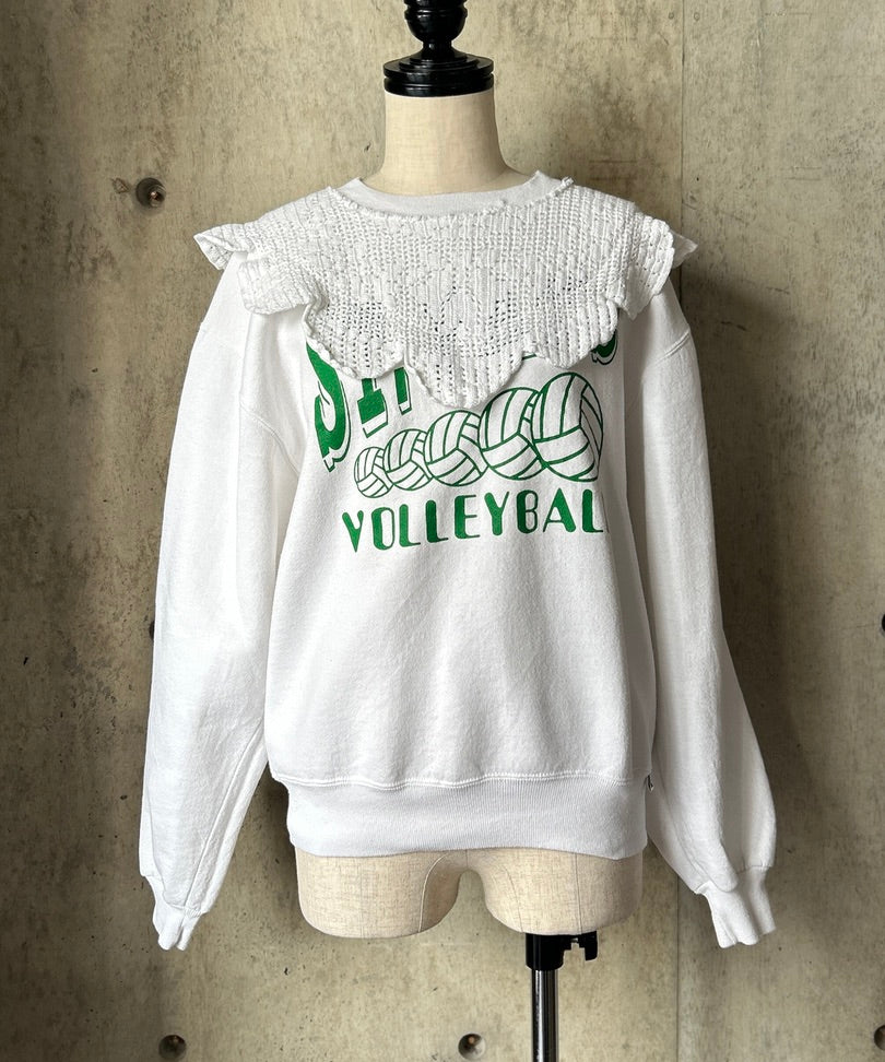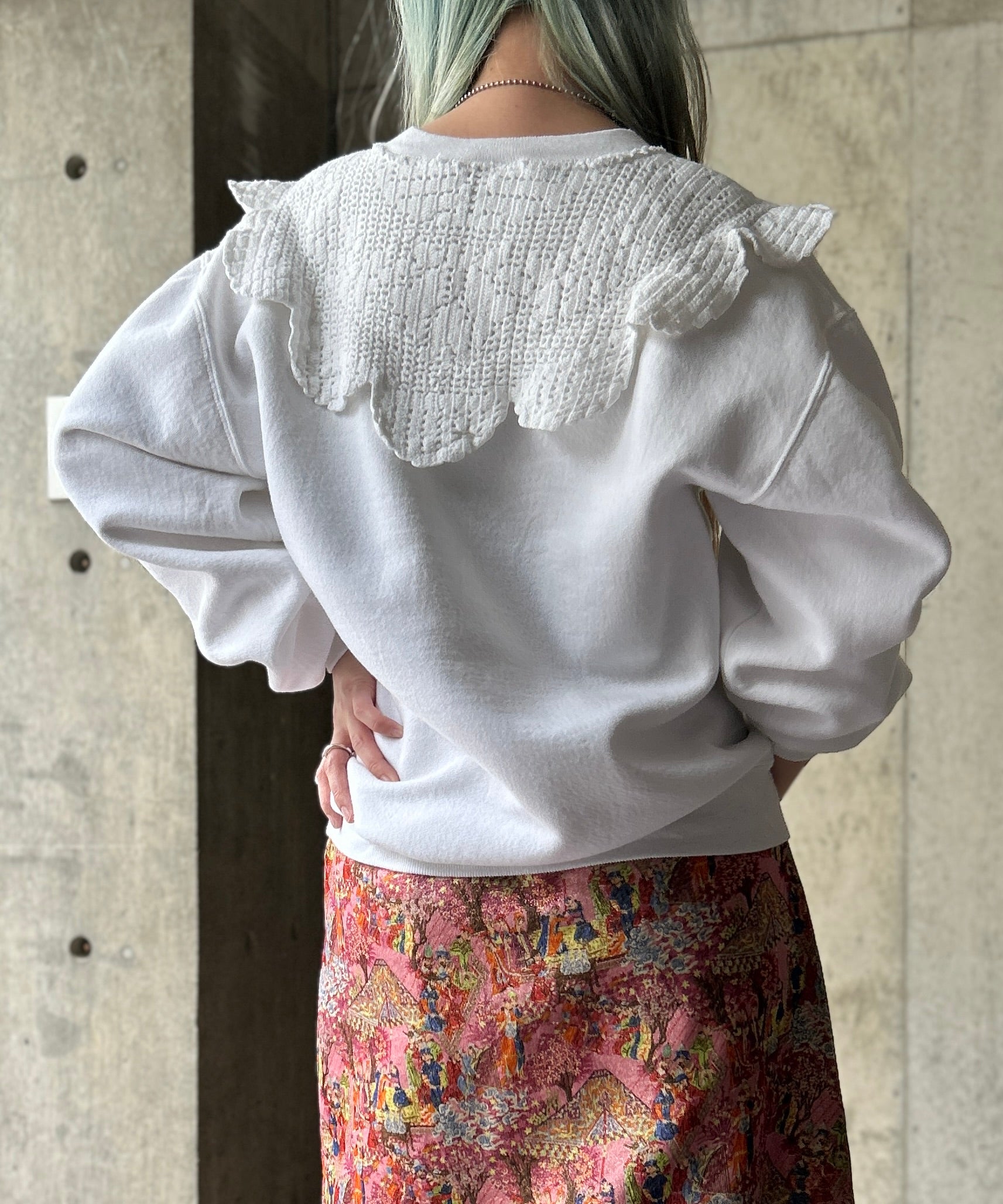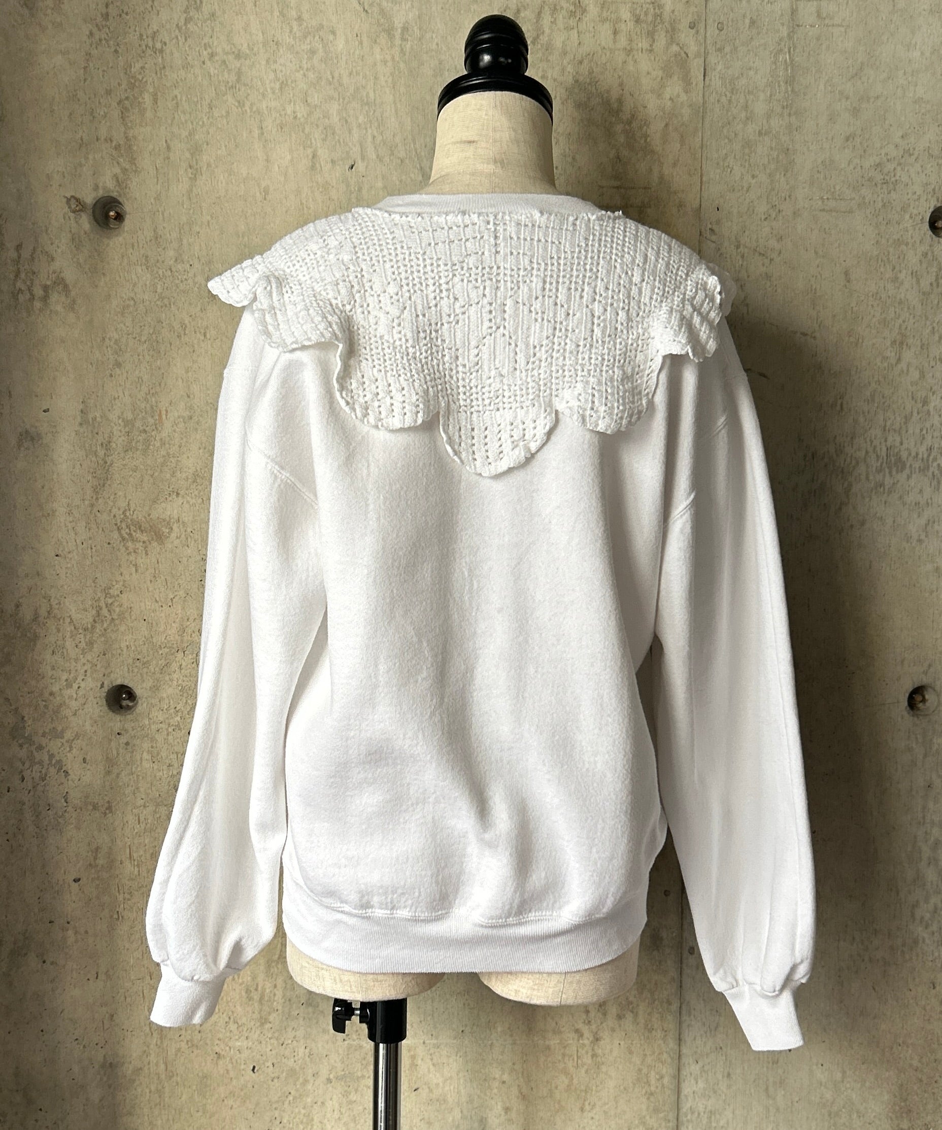 Used Sweatshirtにflowerクロシェレースを