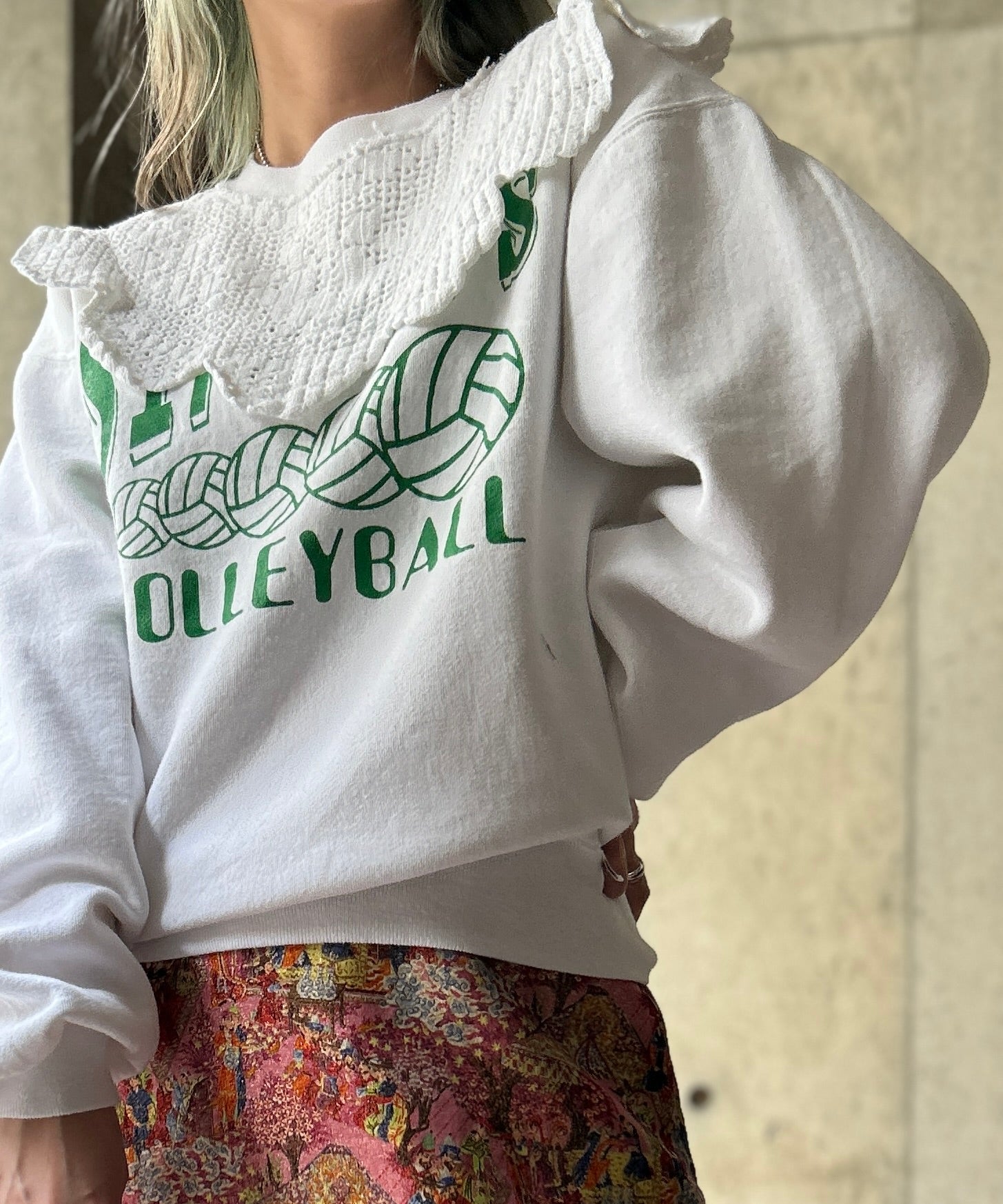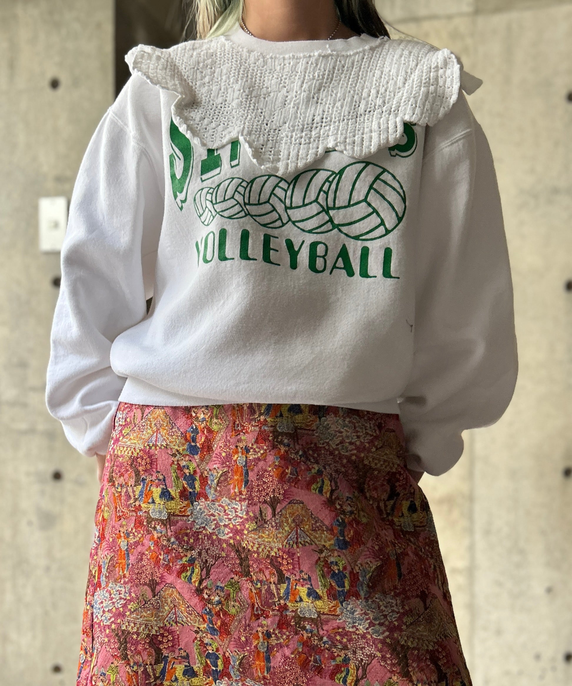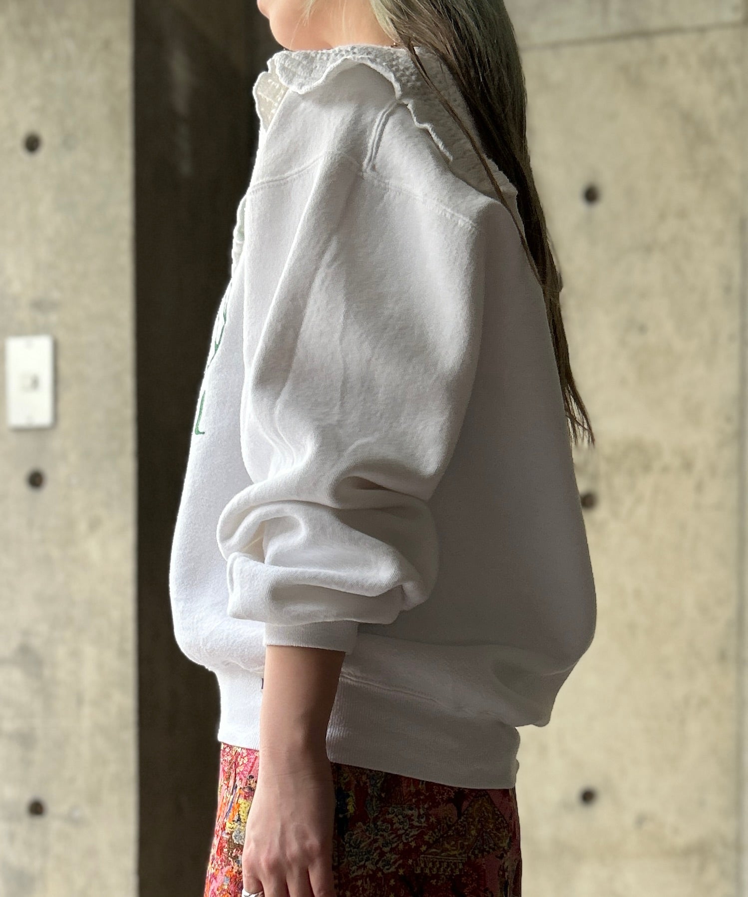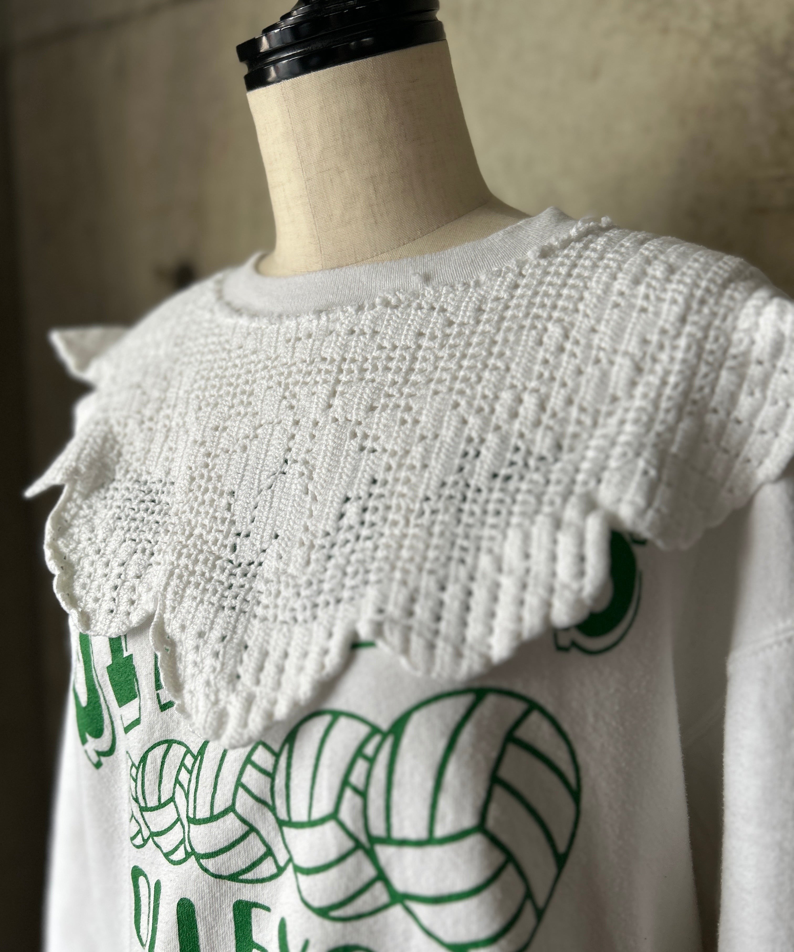 Used Sweatshirtにflowerクロシェレースを