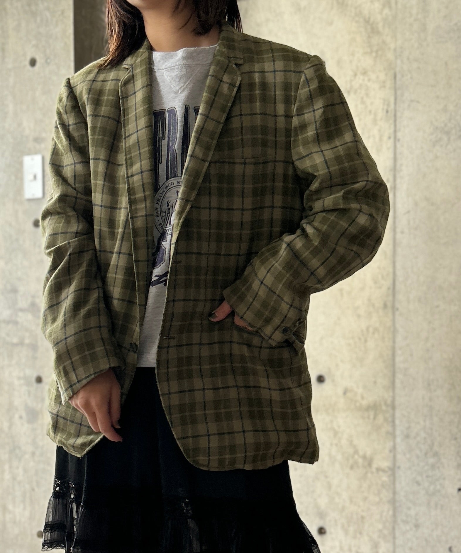 チェック柄のテーラードジャケット。