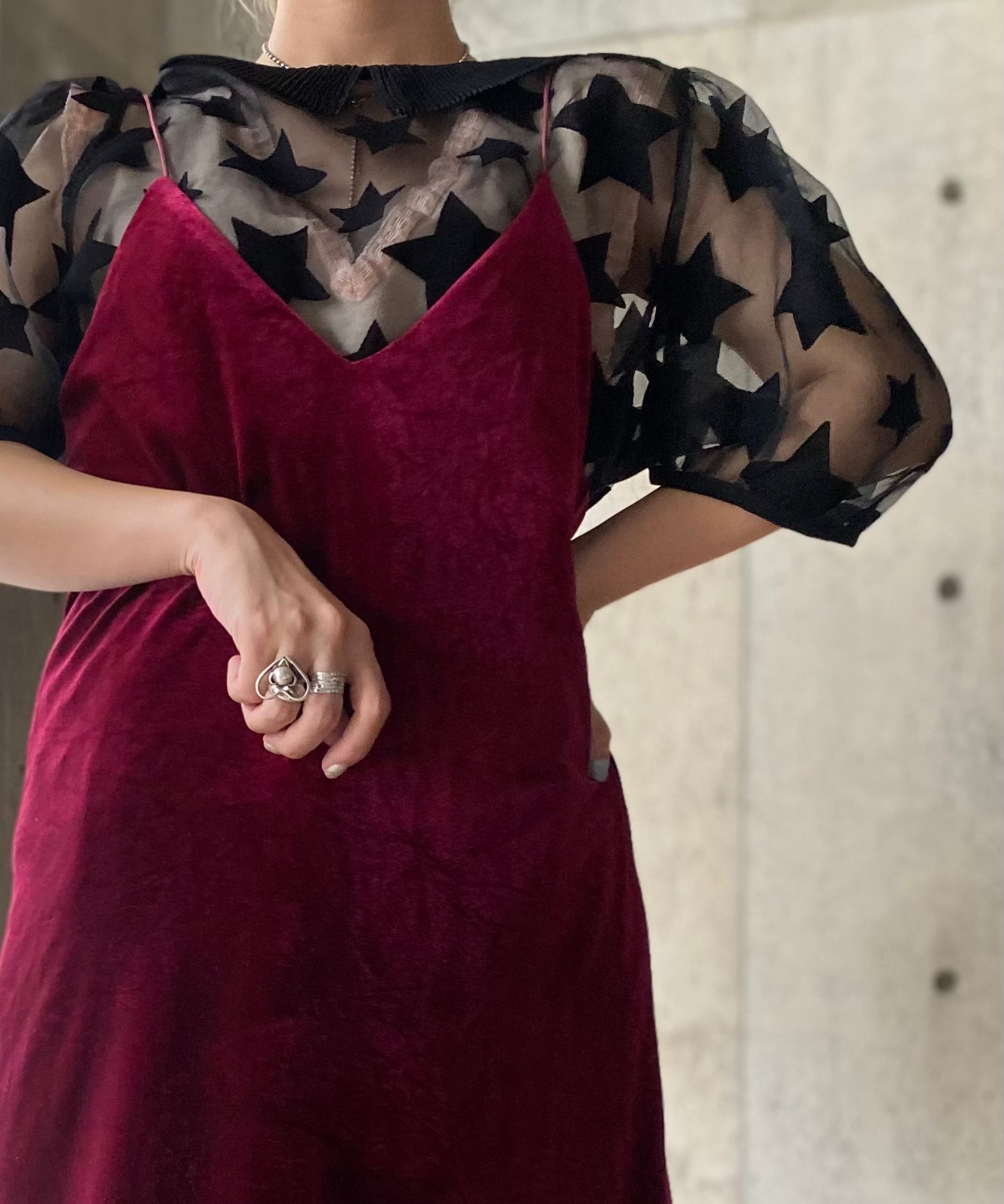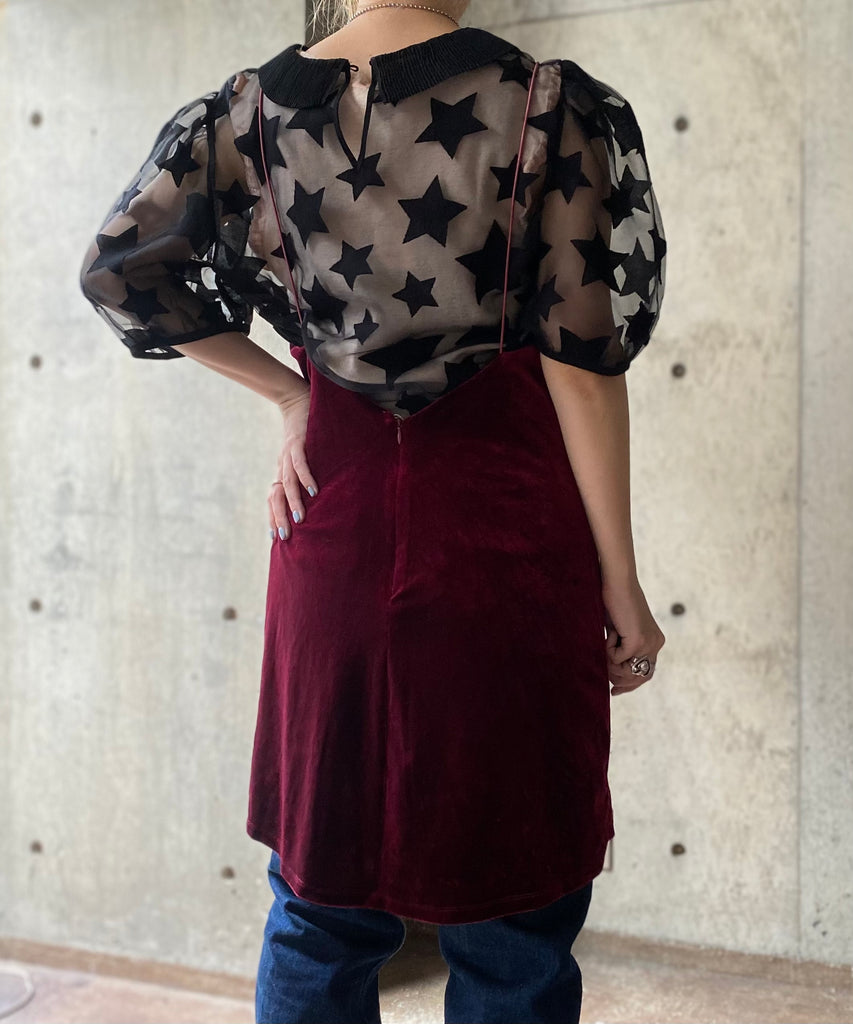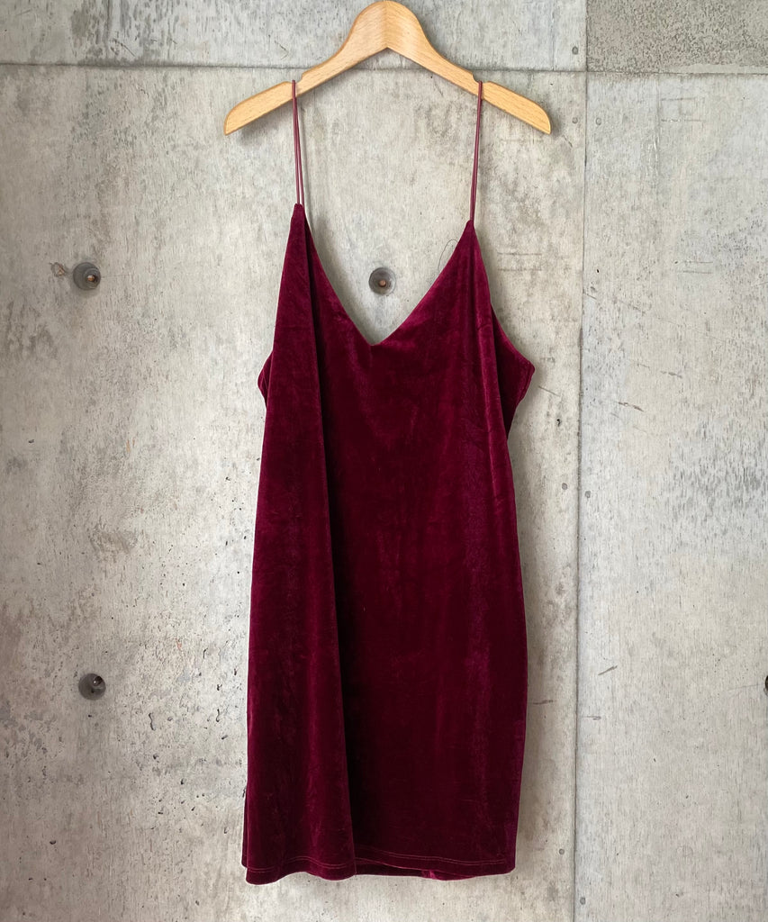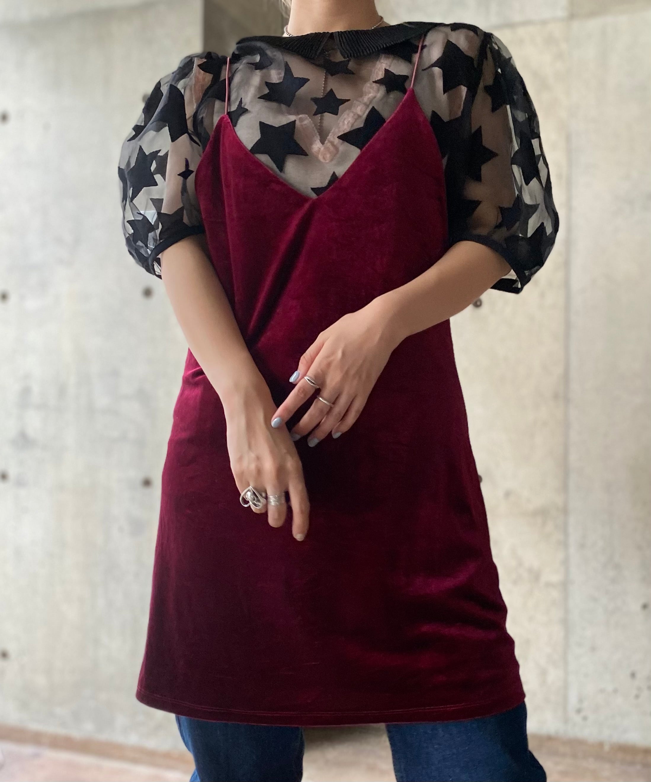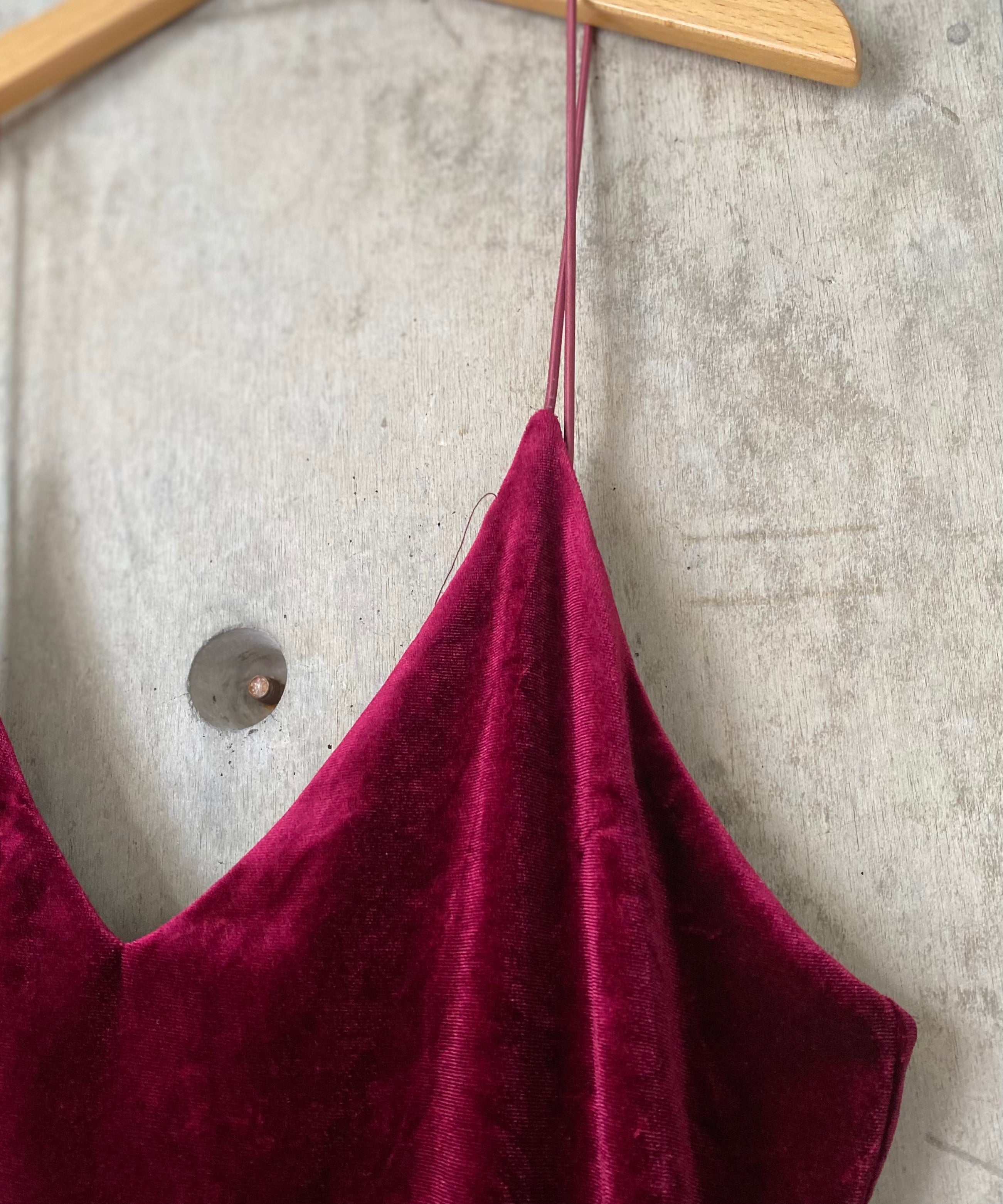 ベロア生地のキャミソールワンピース。