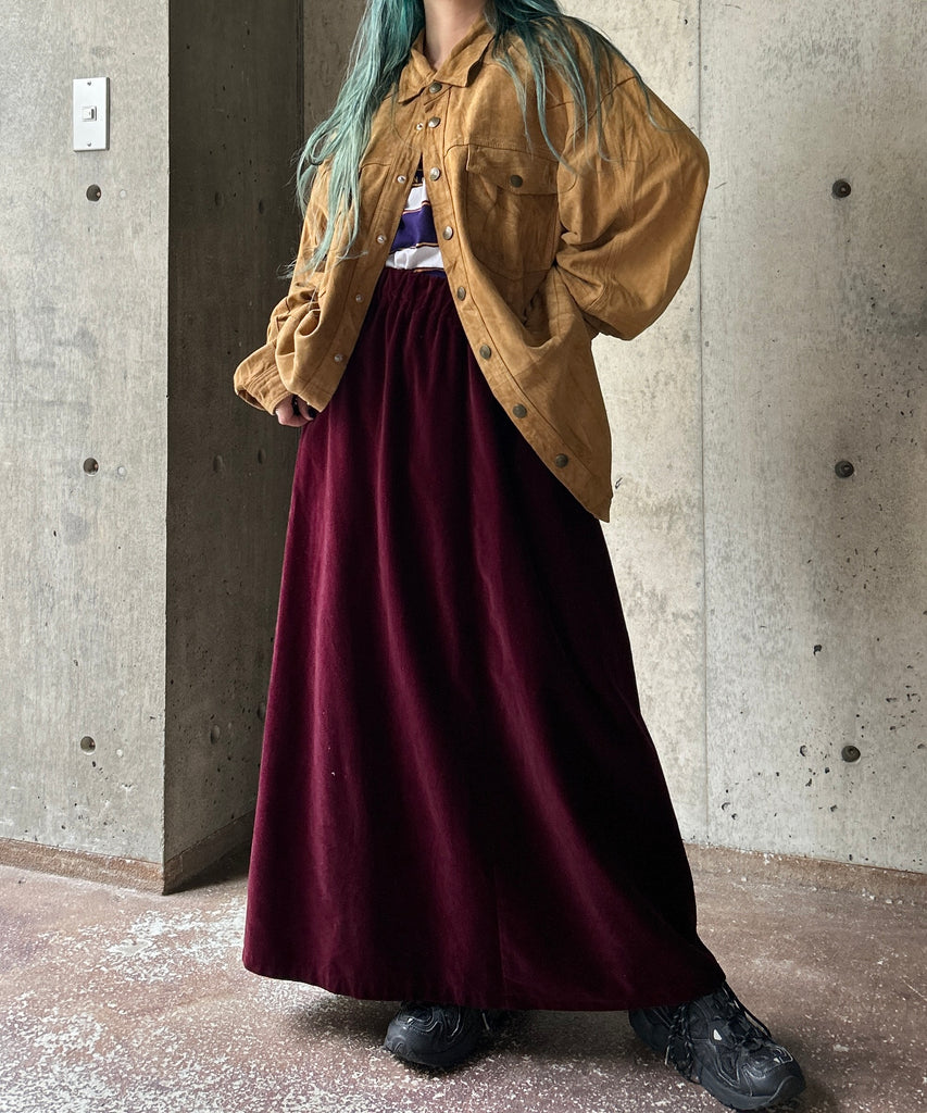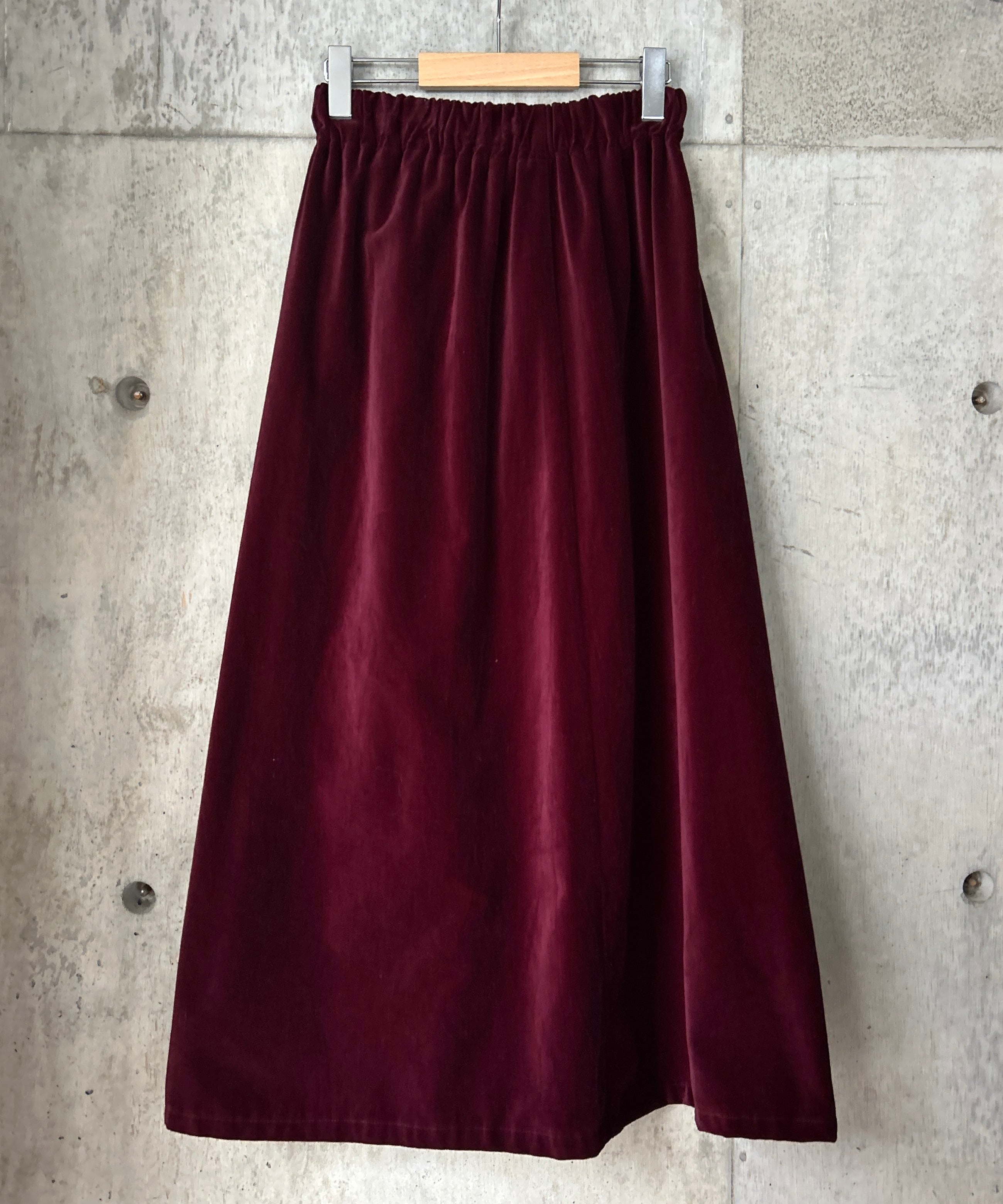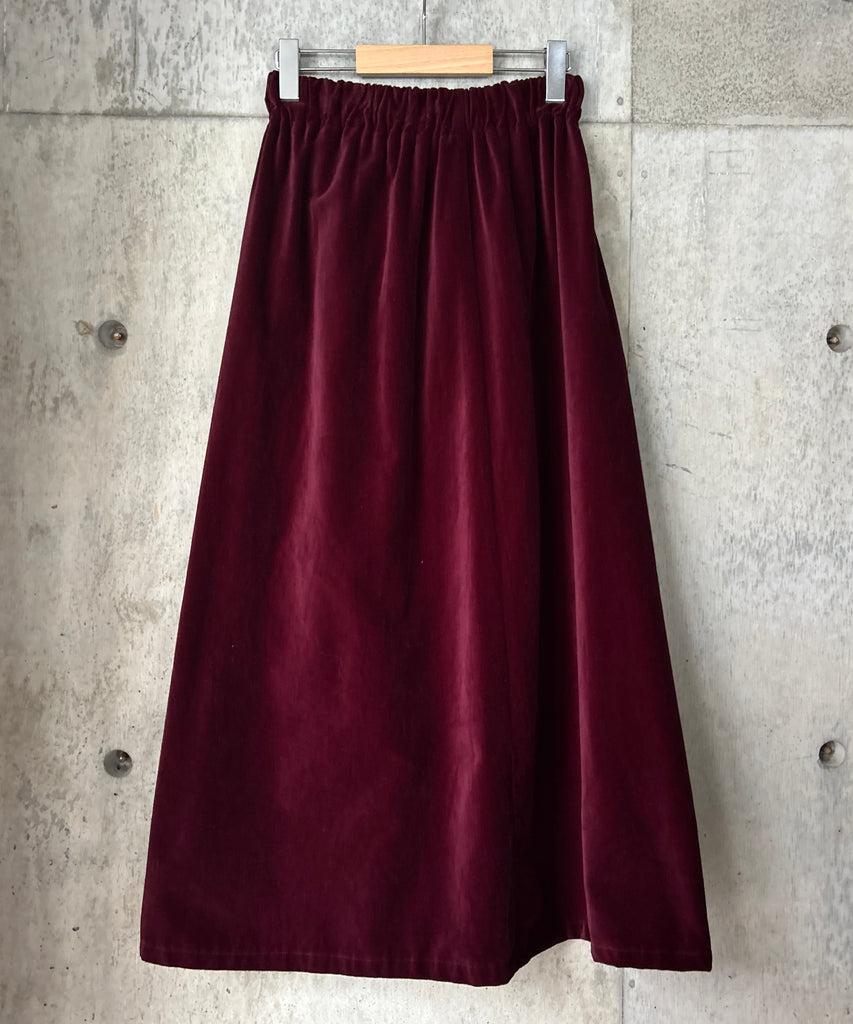 コンパクトめなトップスと相性抜群な緩やかなフレアシルエット。