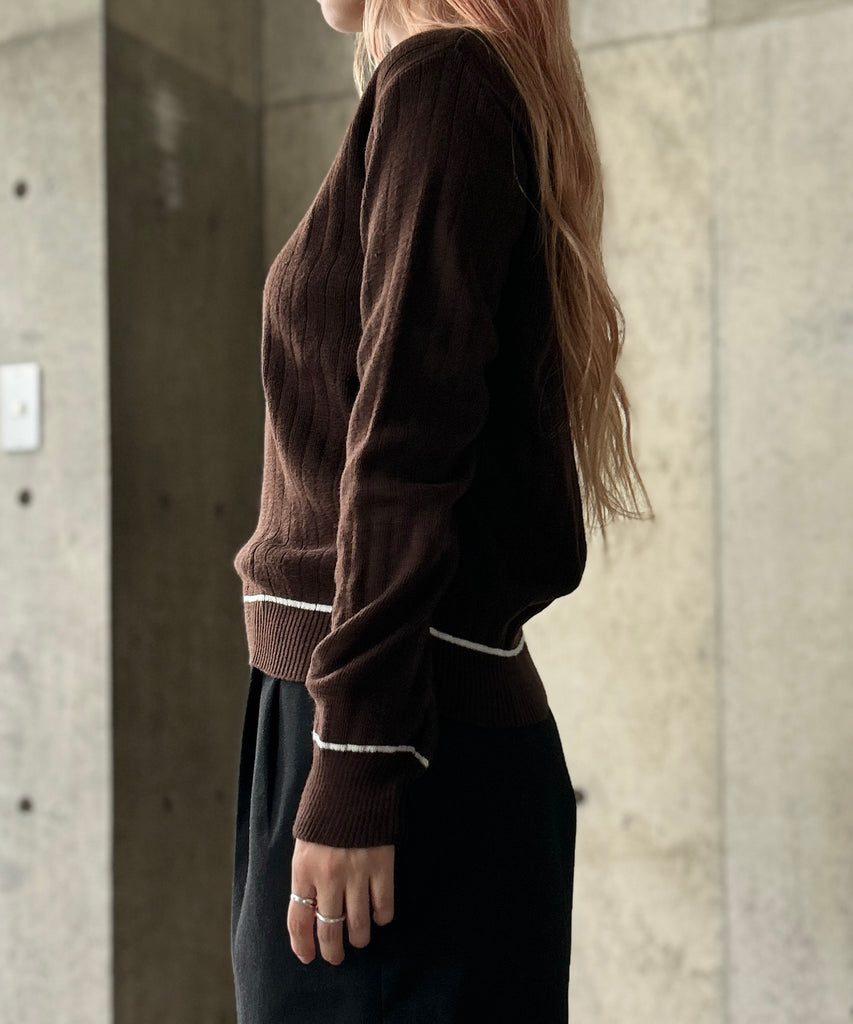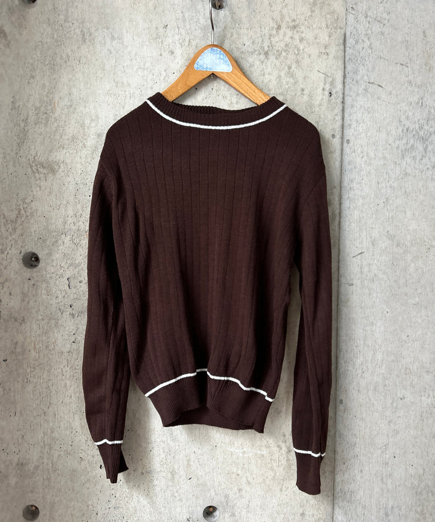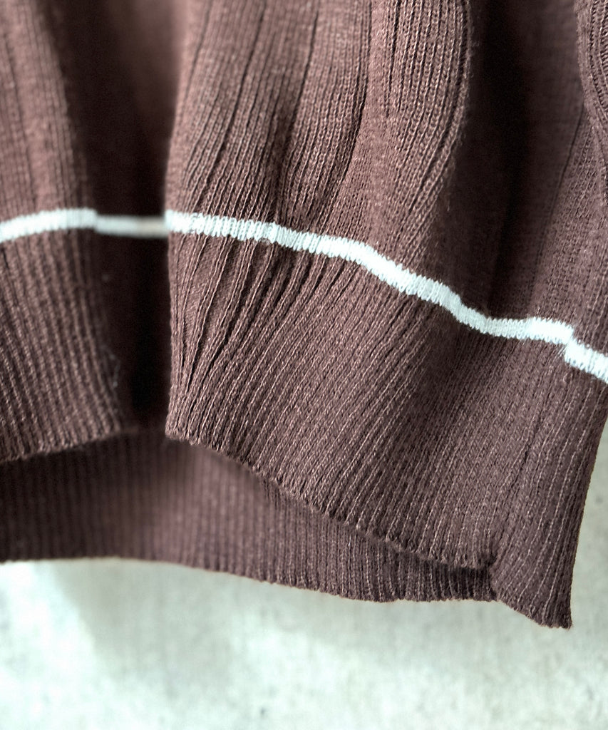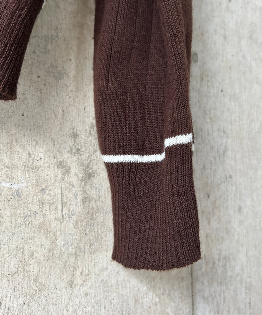 チョコレートのようなブラウンカラーにホワイトのラインが効いた