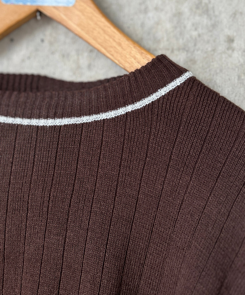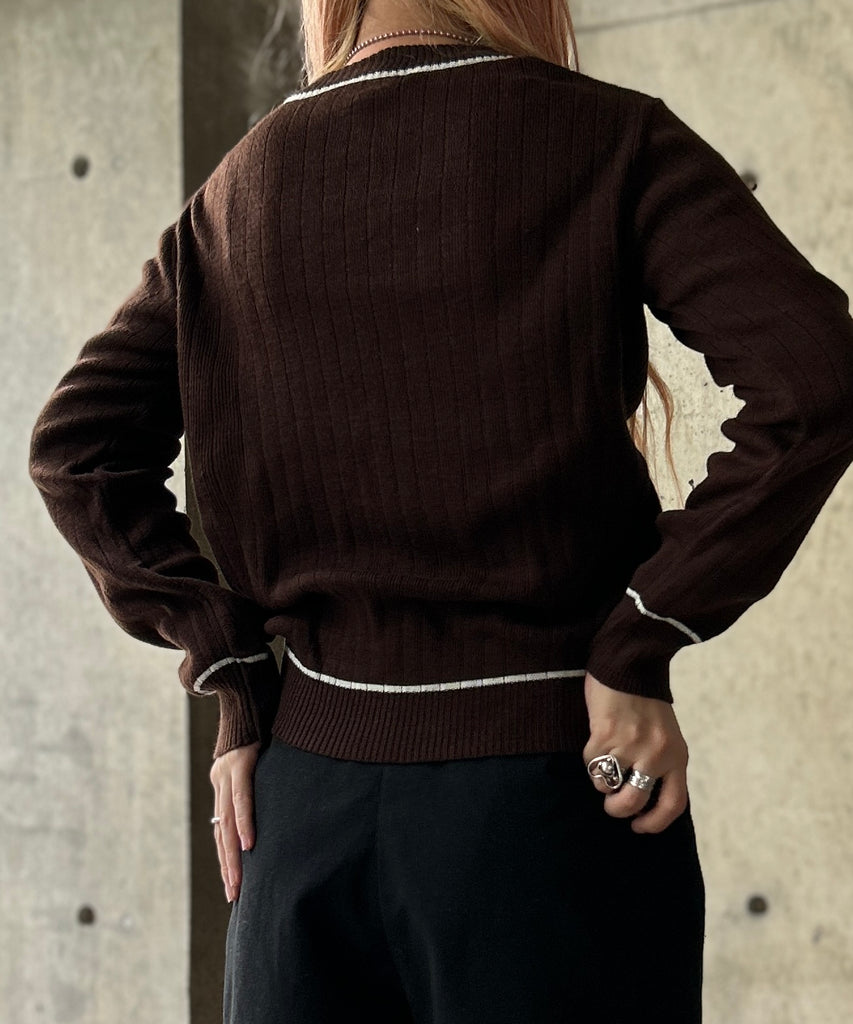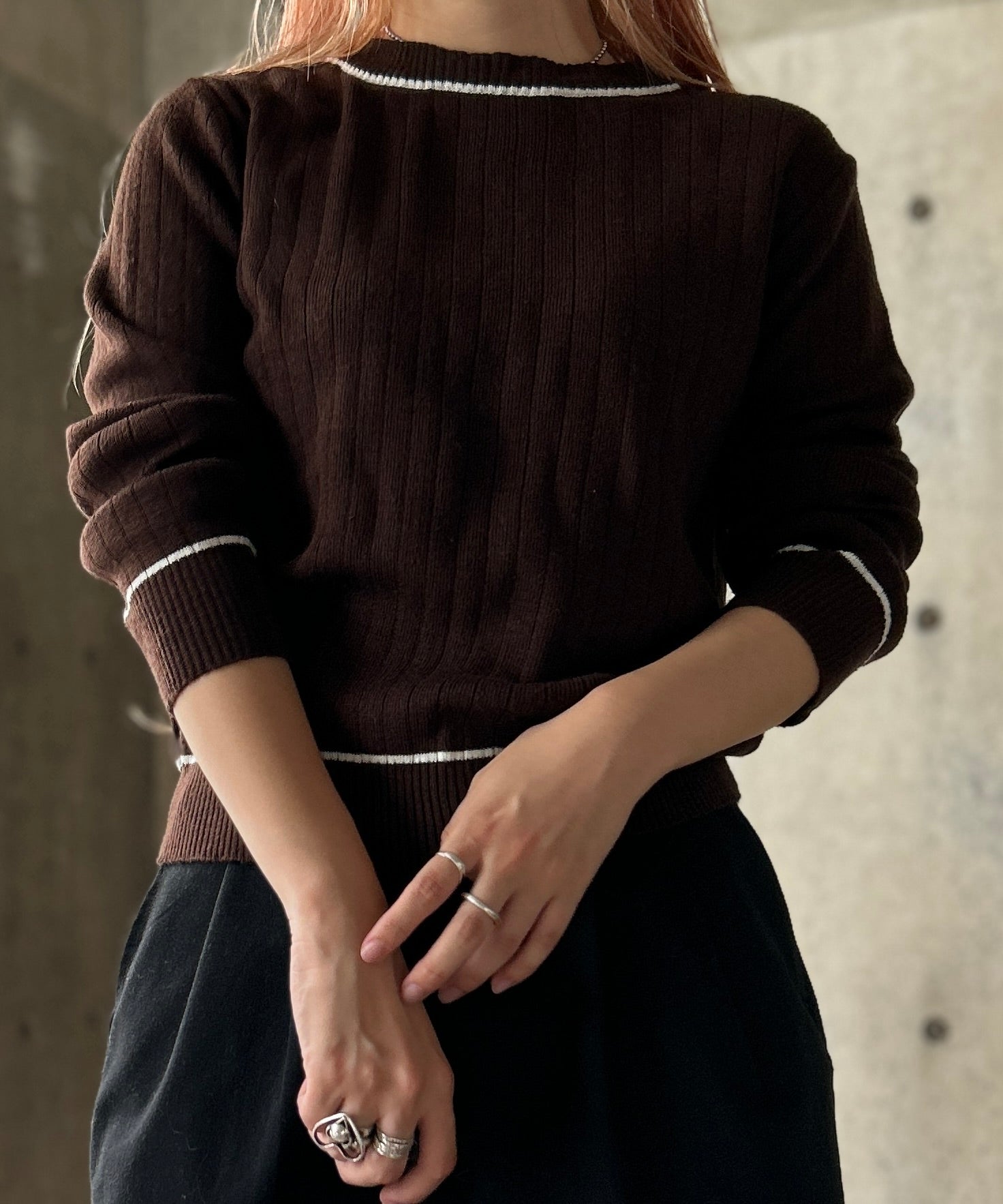 チョコレートのようなブラウンカラーにホワイトのラインが効いた