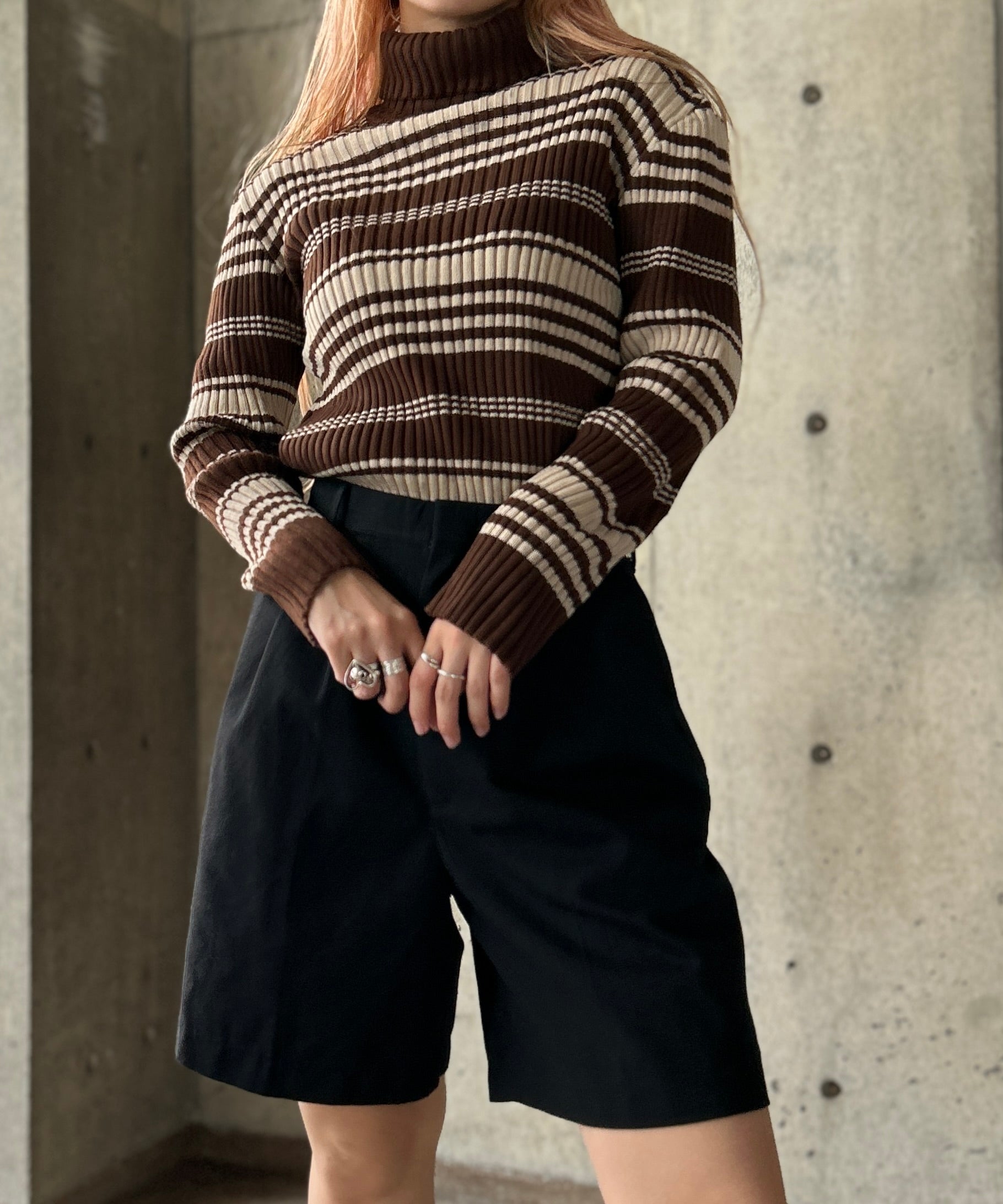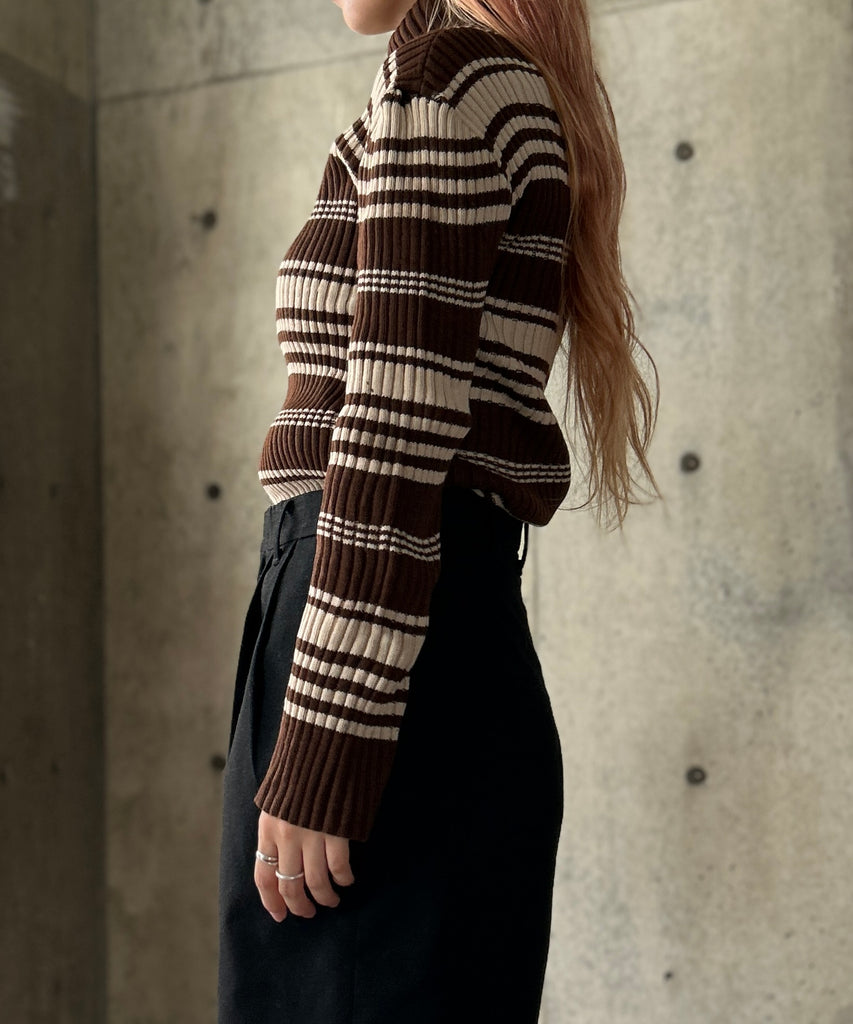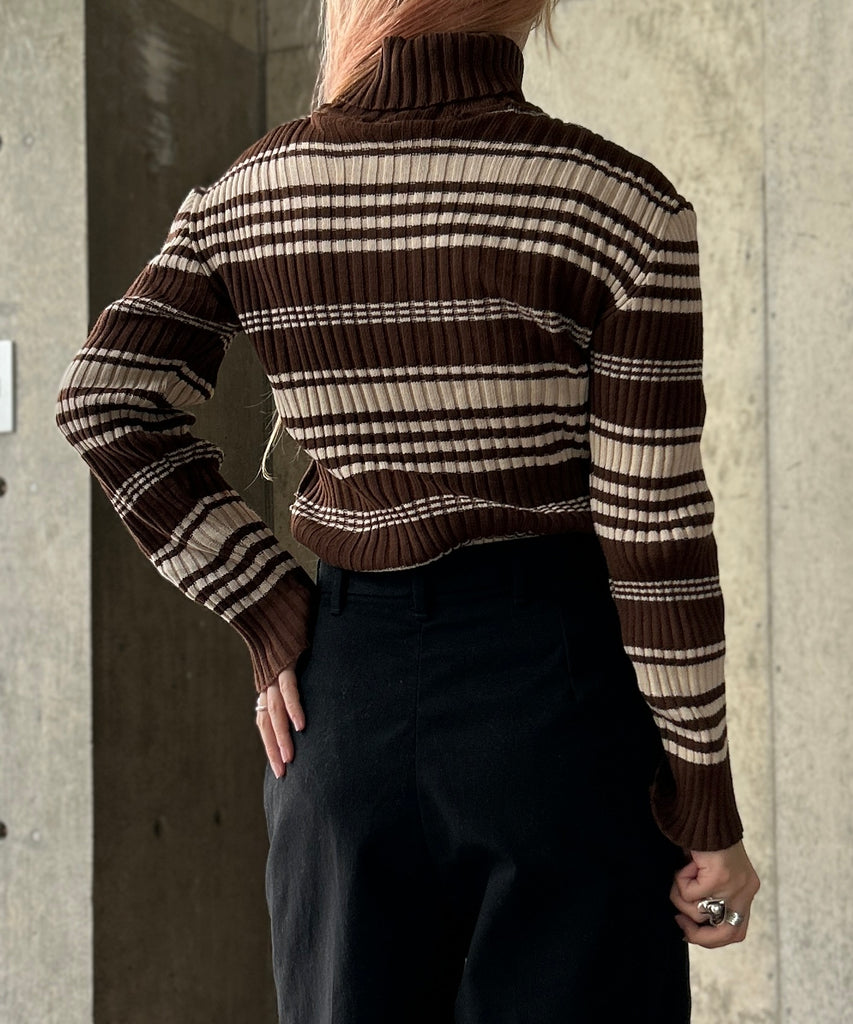 ボーダー柄のタートルニット。