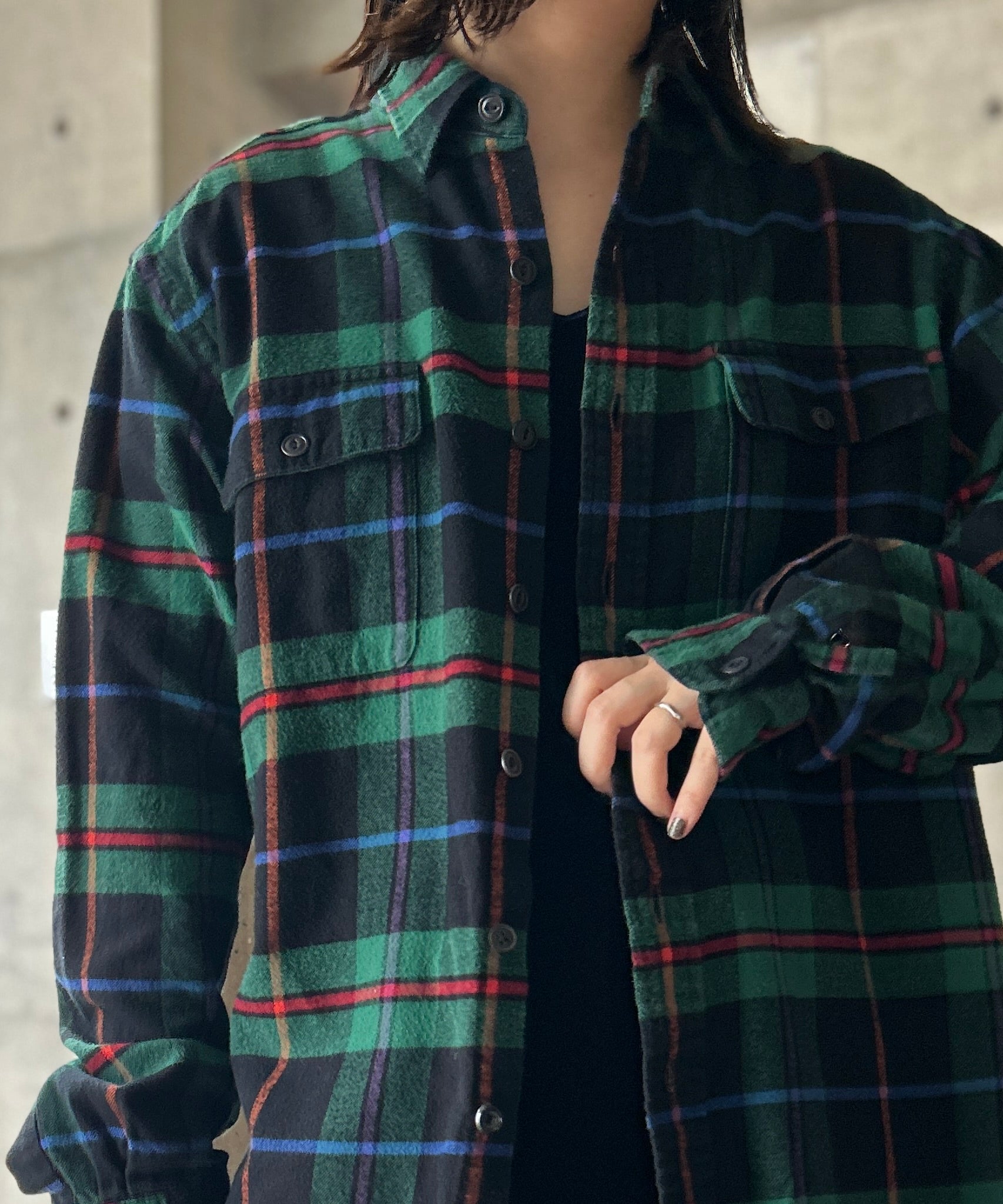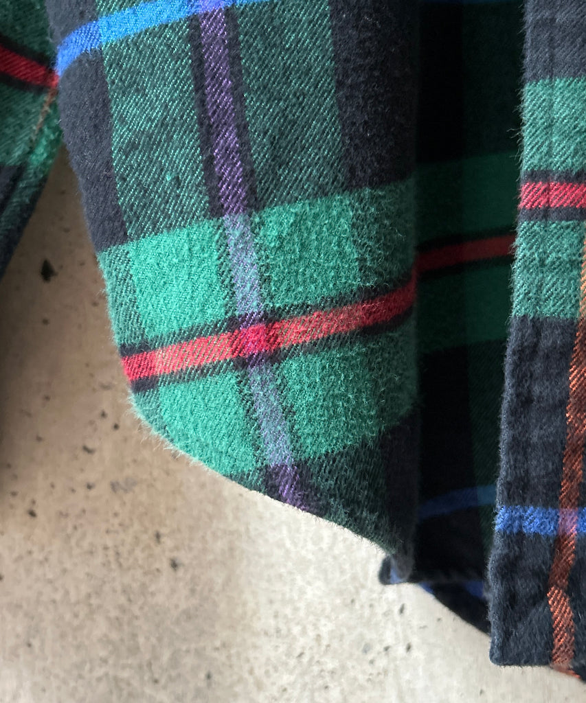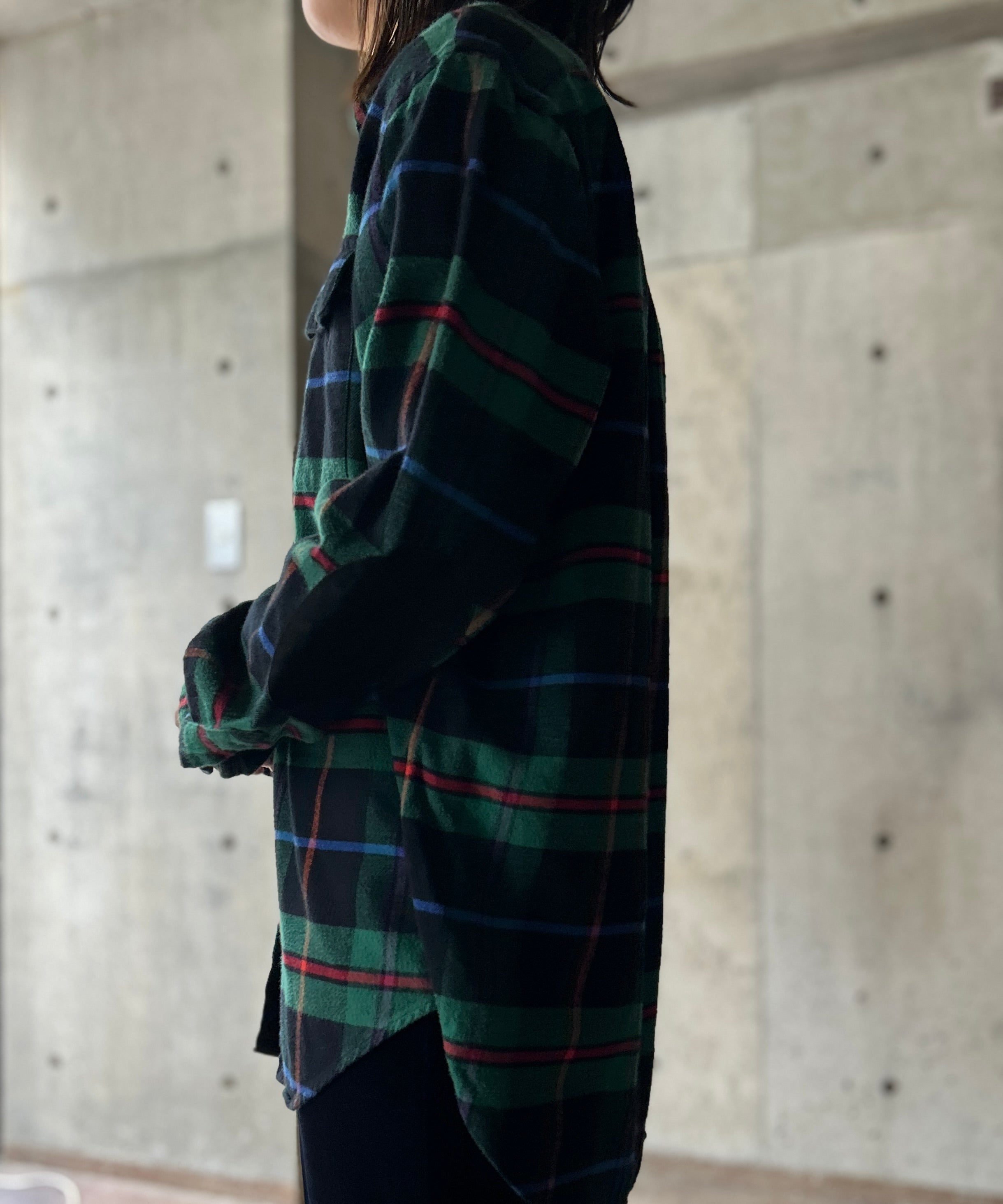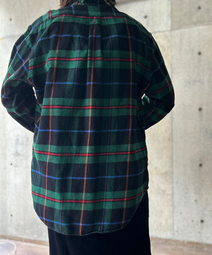 チェック柄のネルシャツ。