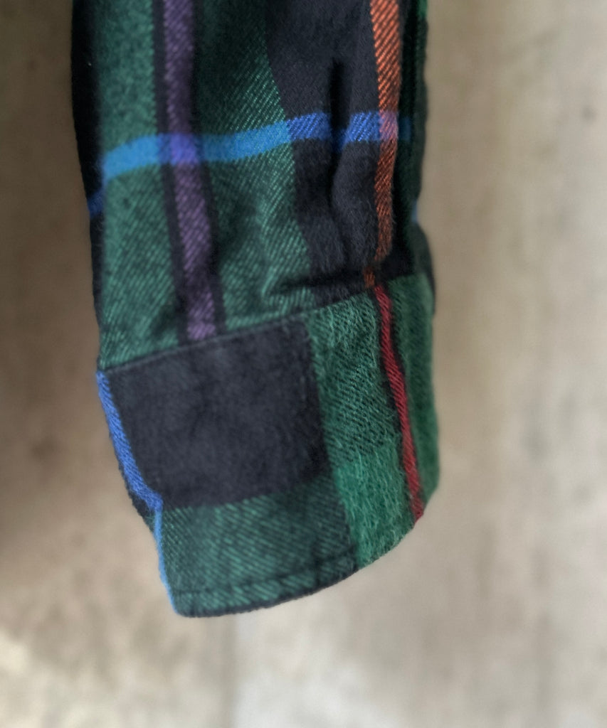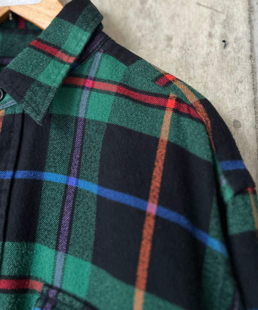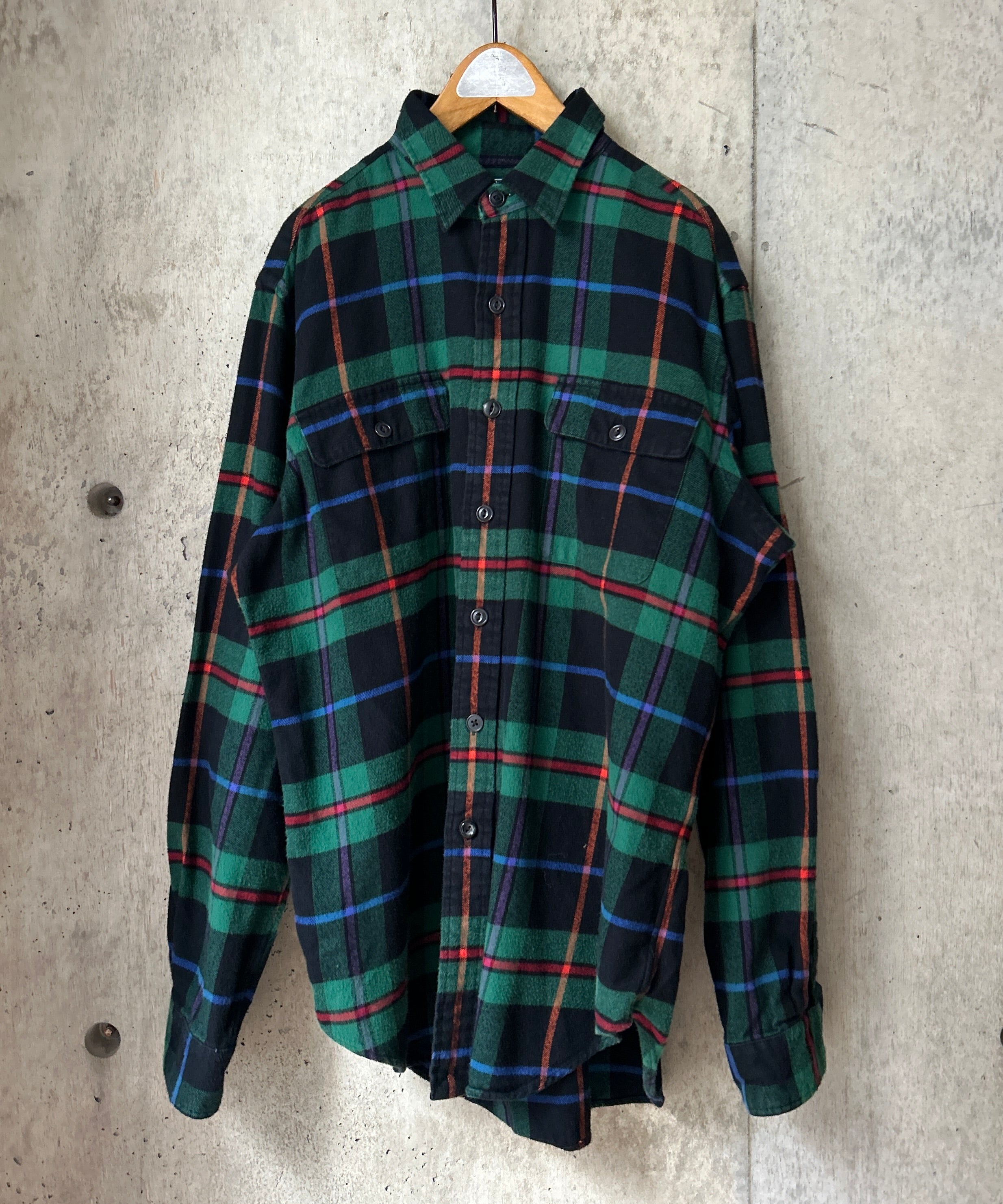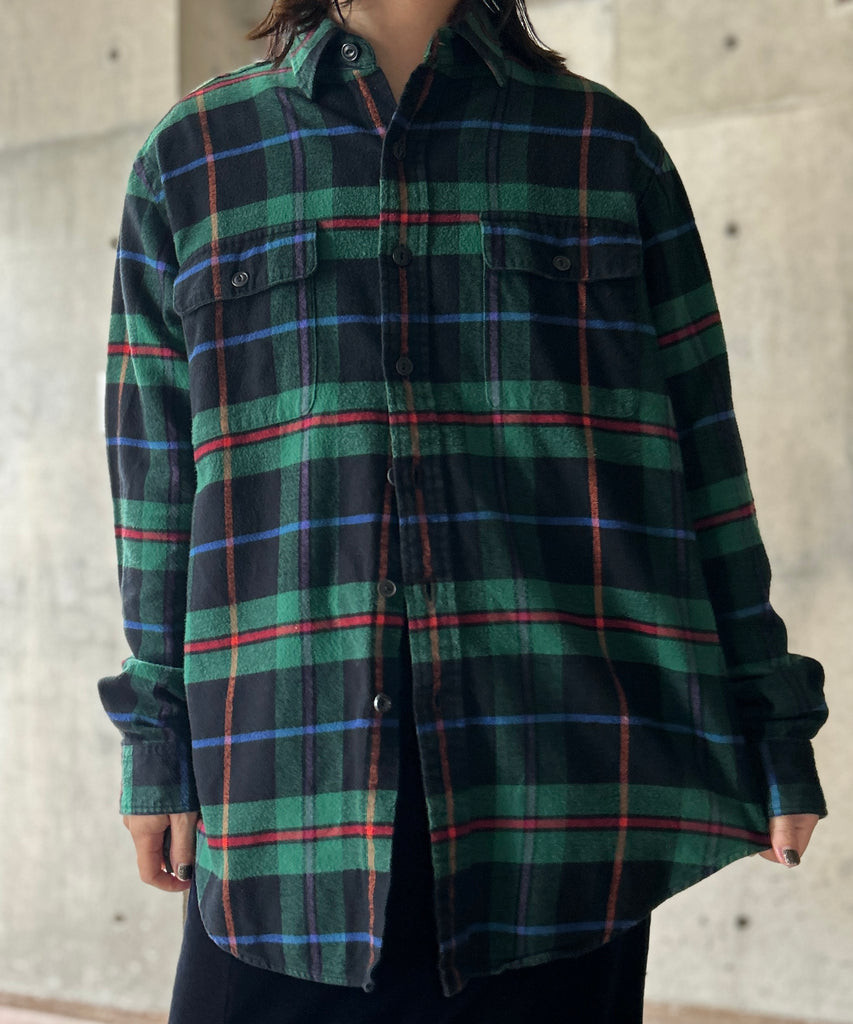 チェック柄のネルシャツ。