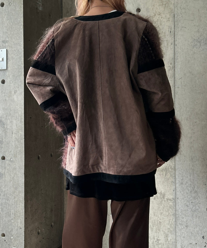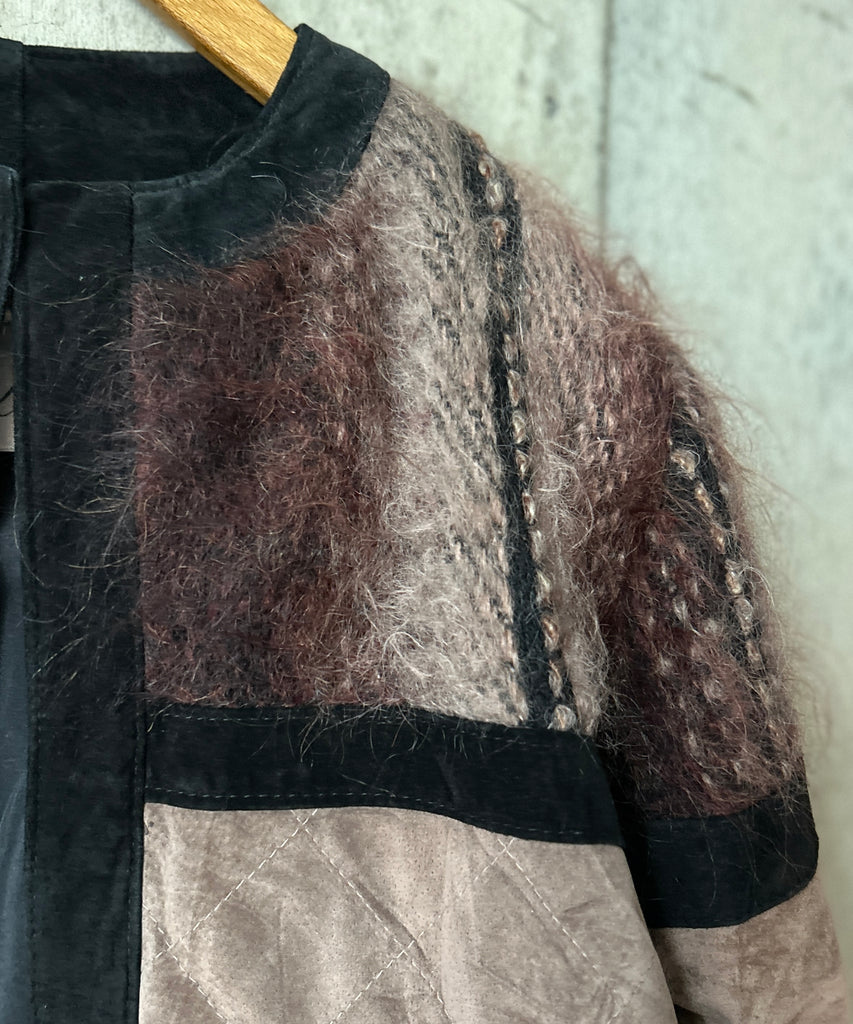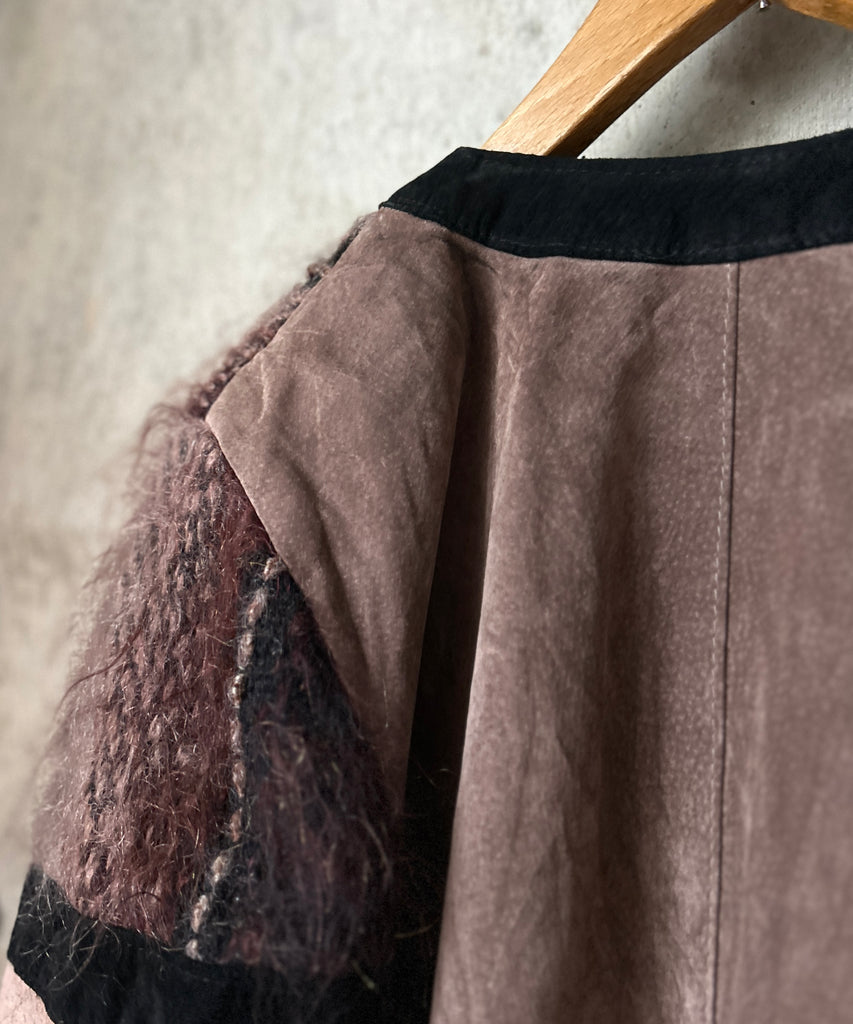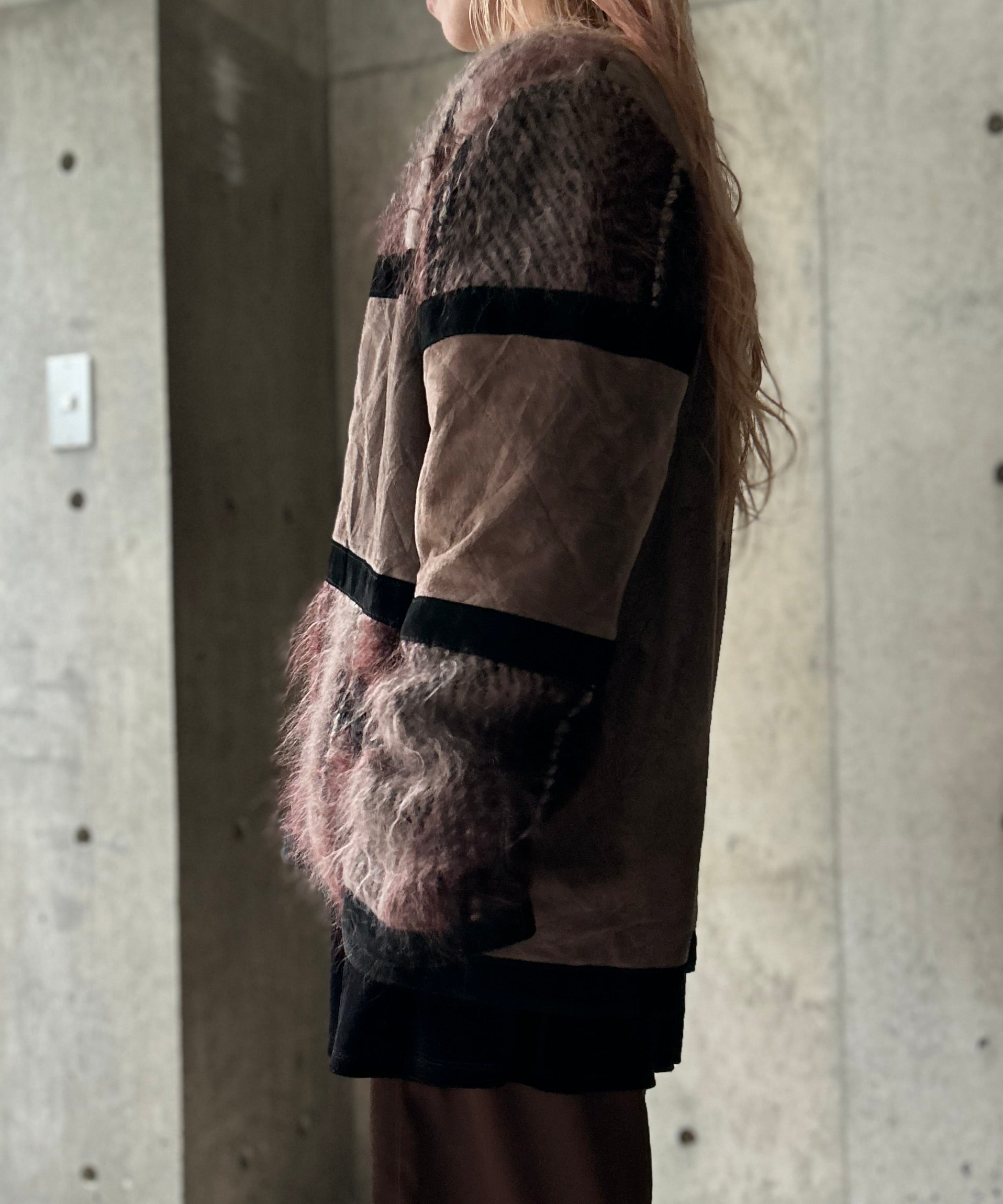フワフワのモヘア生地と、しっとりとしたレザーの切り替えが