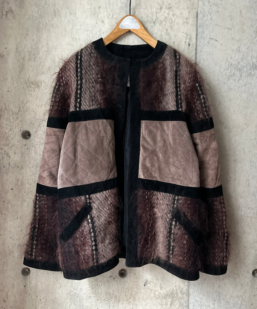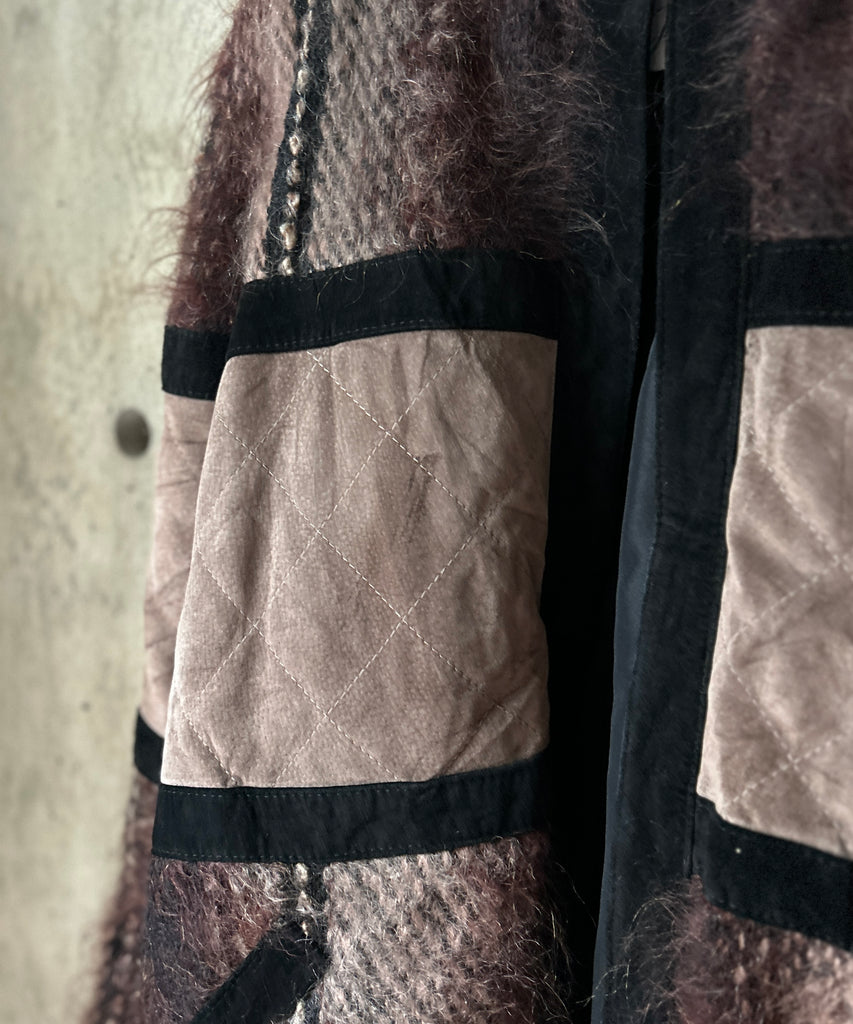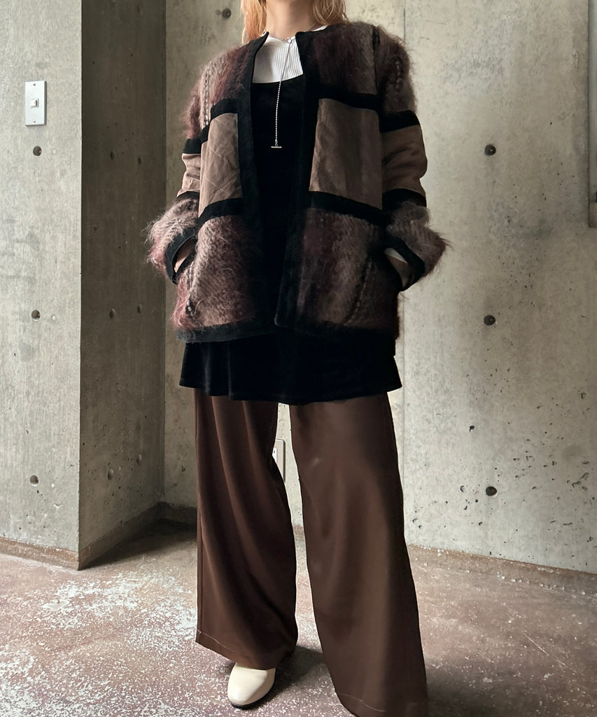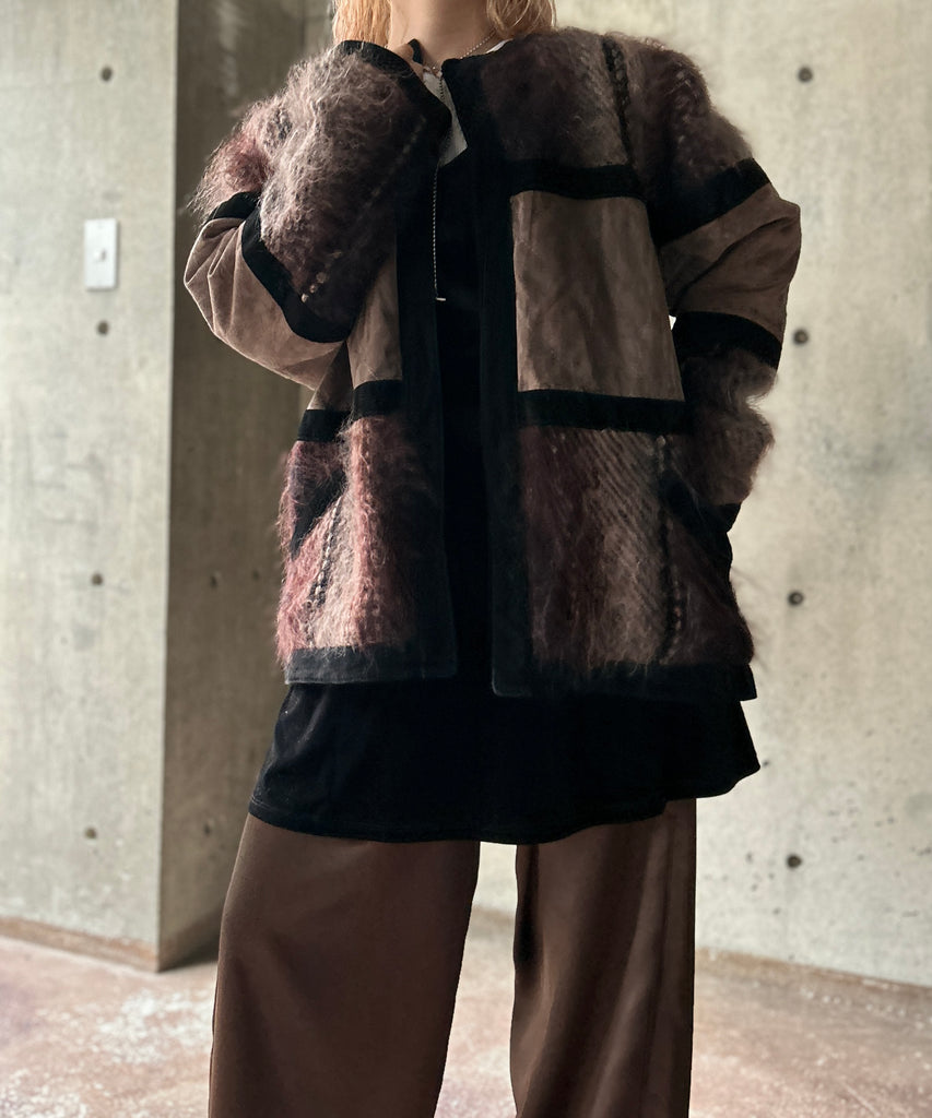 フワフワのモヘア生地と、しっとりとしたレザーの切り替えが