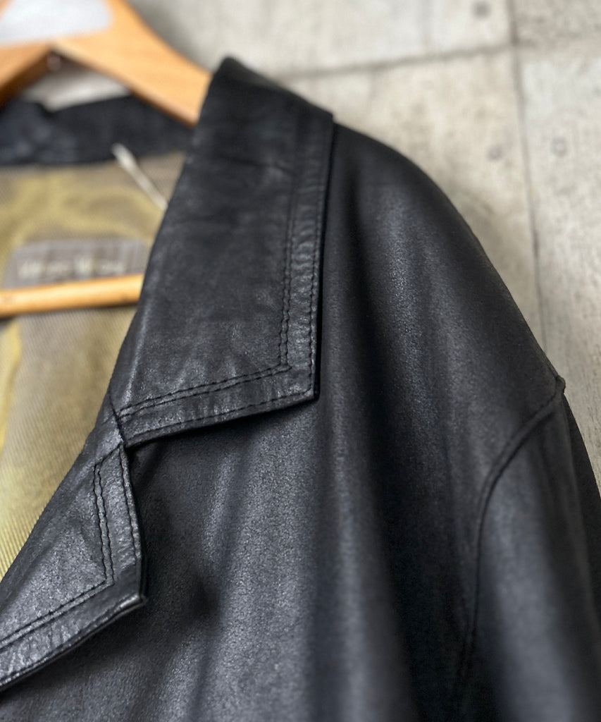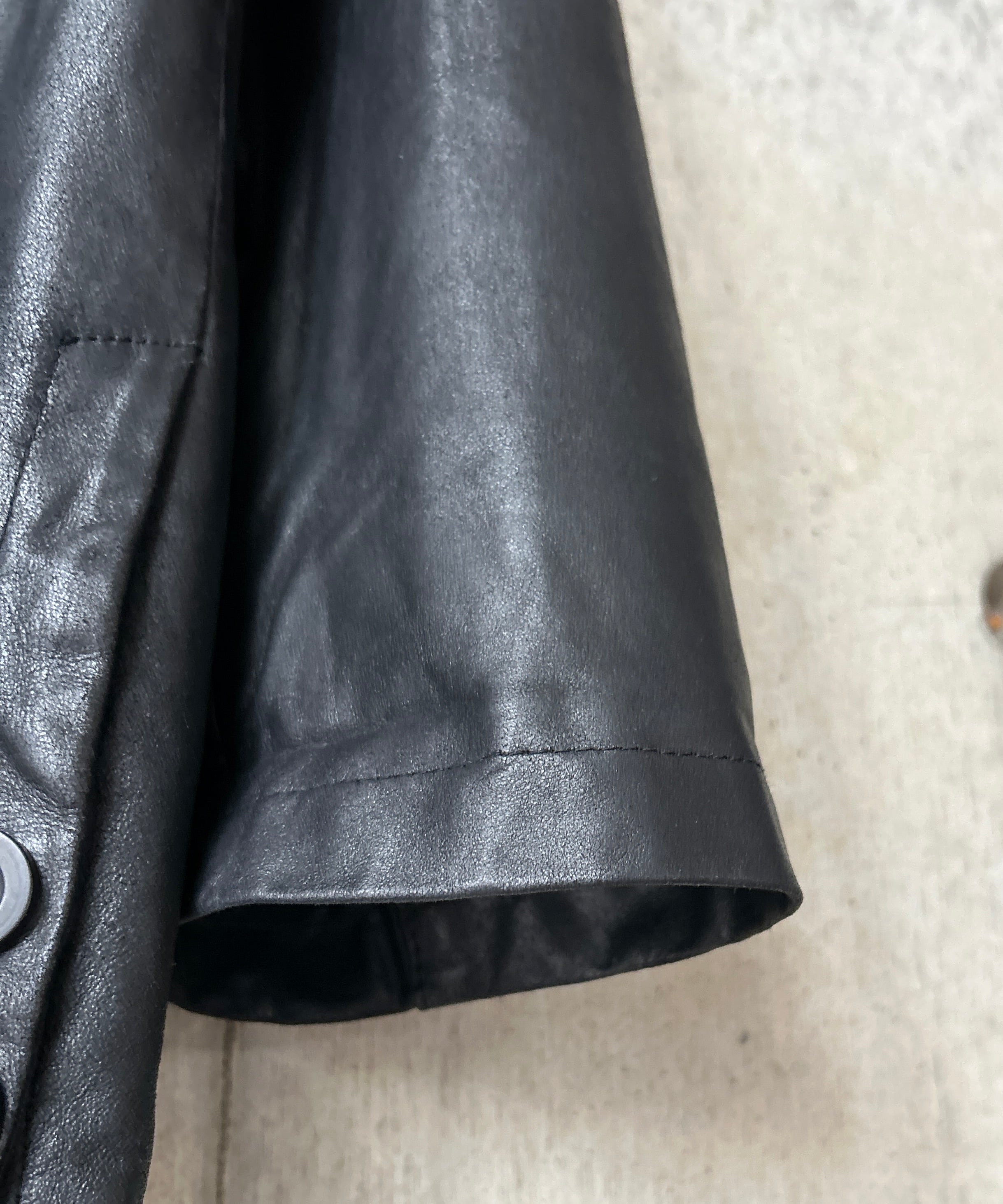 表記ありませんがおそらくリアルレザー、薄手めですが