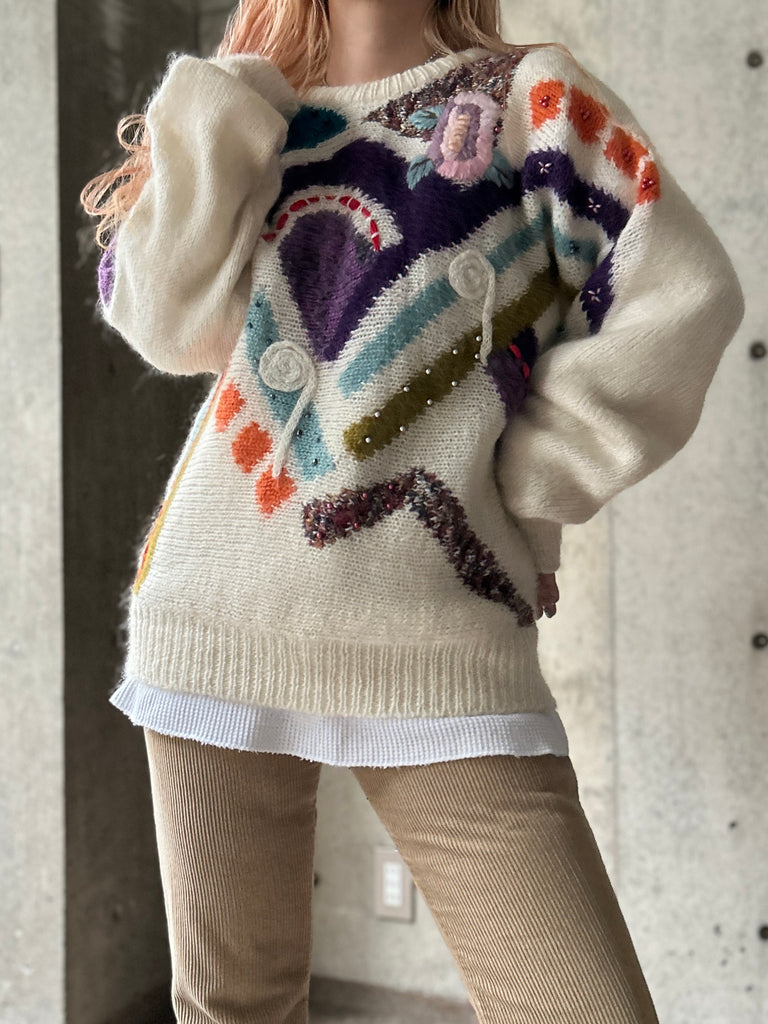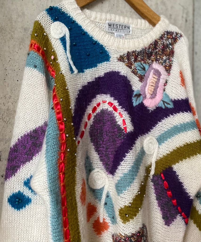 ビーズやサテンテープが縫い付けられていたり、花柄や渦巻き模様の