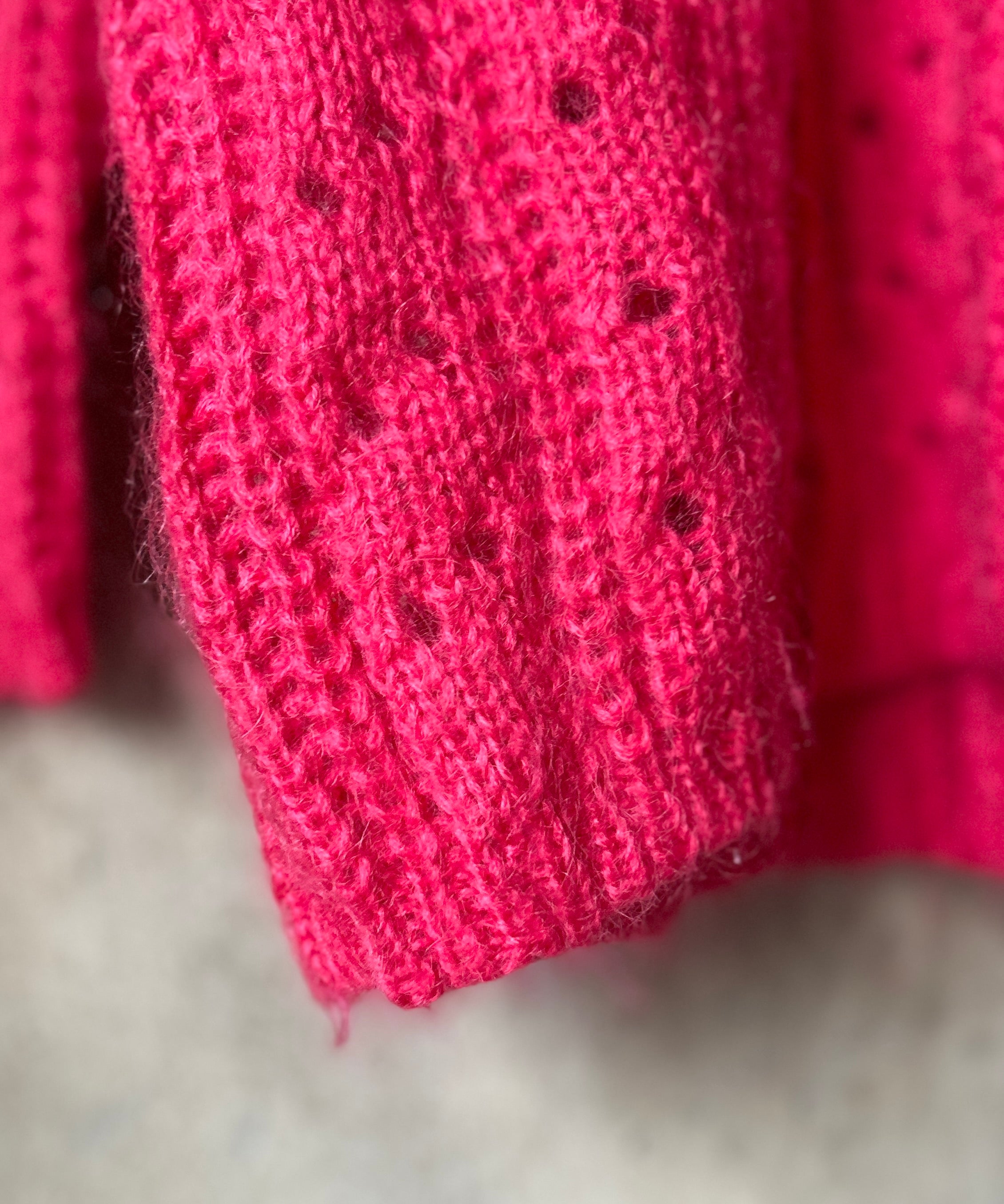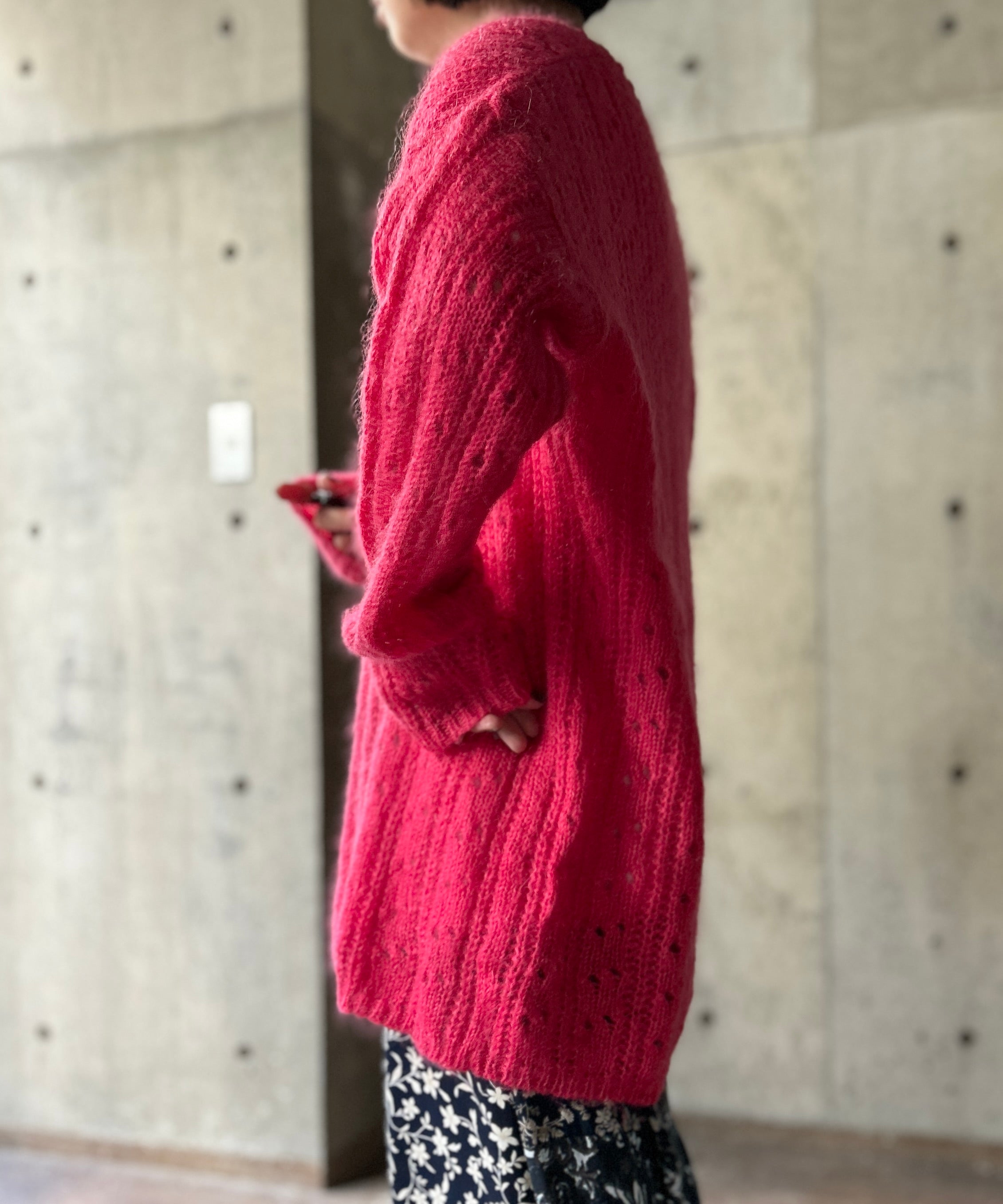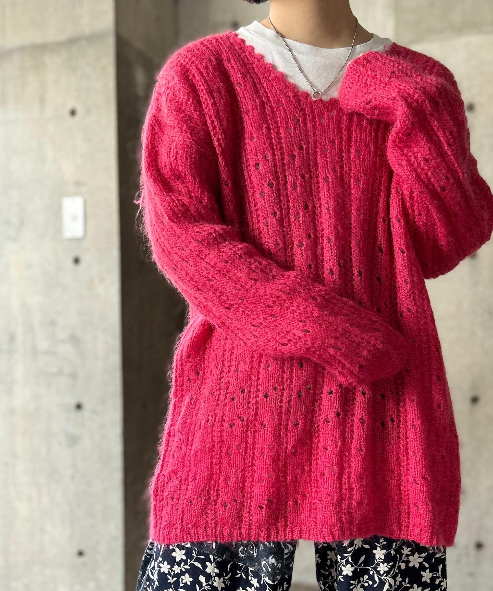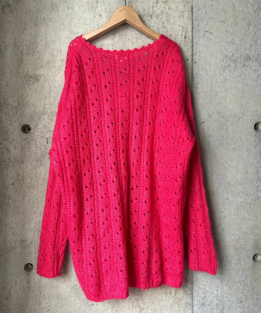 控えめな透かし編み、ネック周りの縁取りレースなど