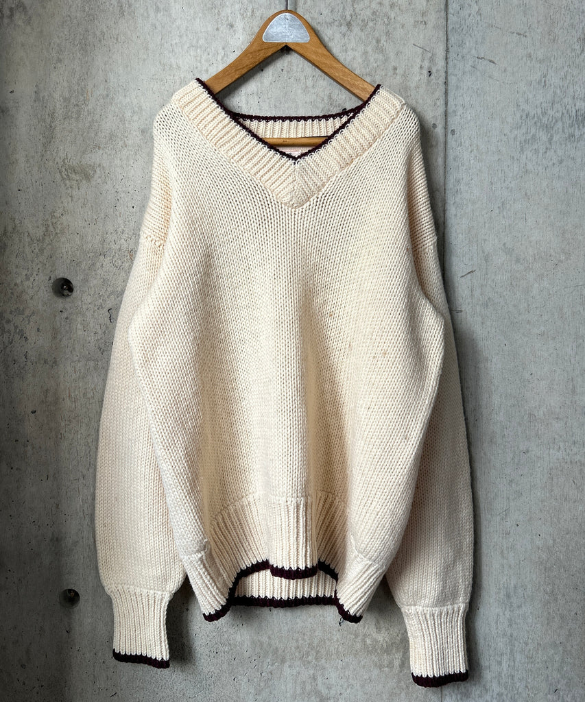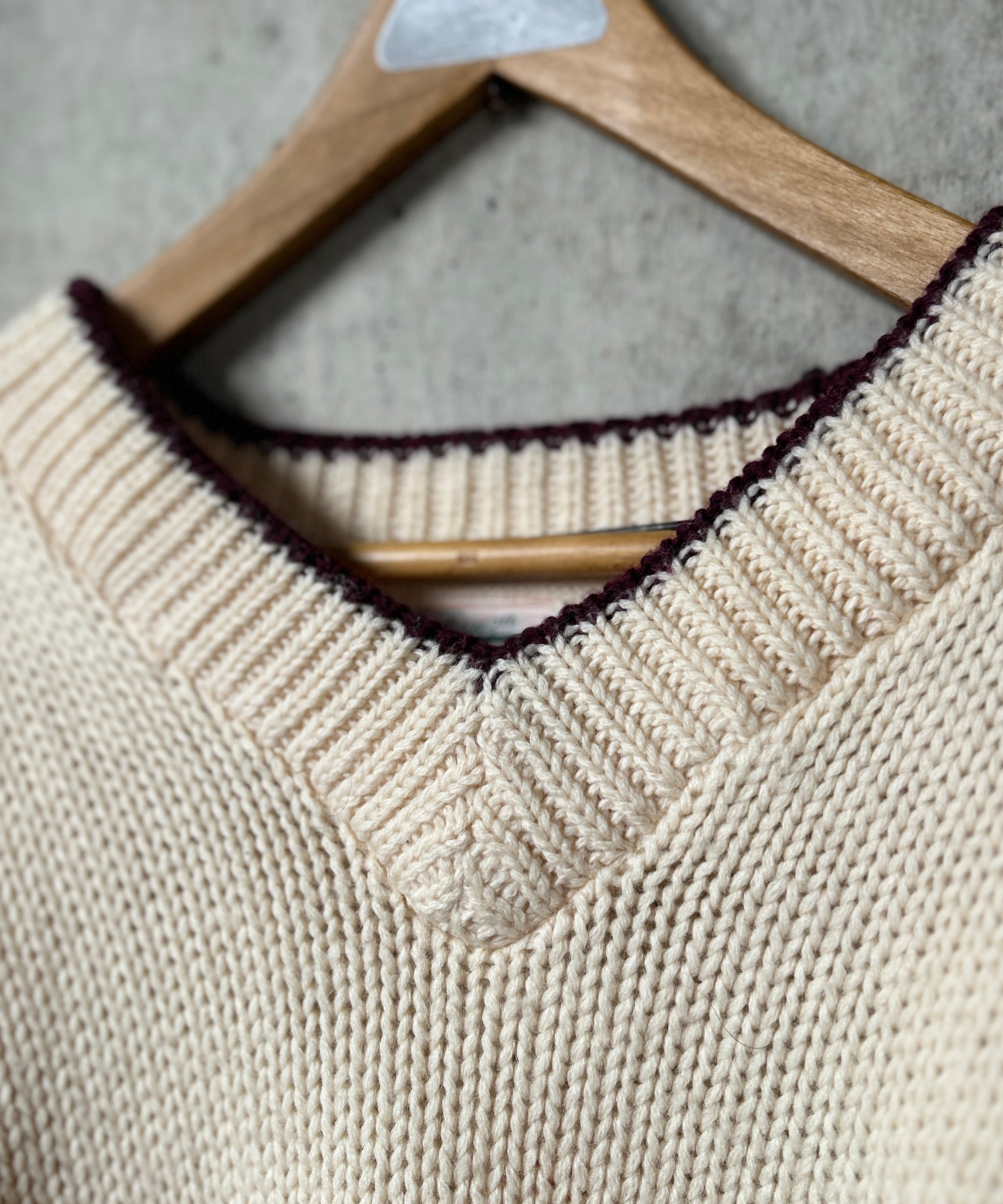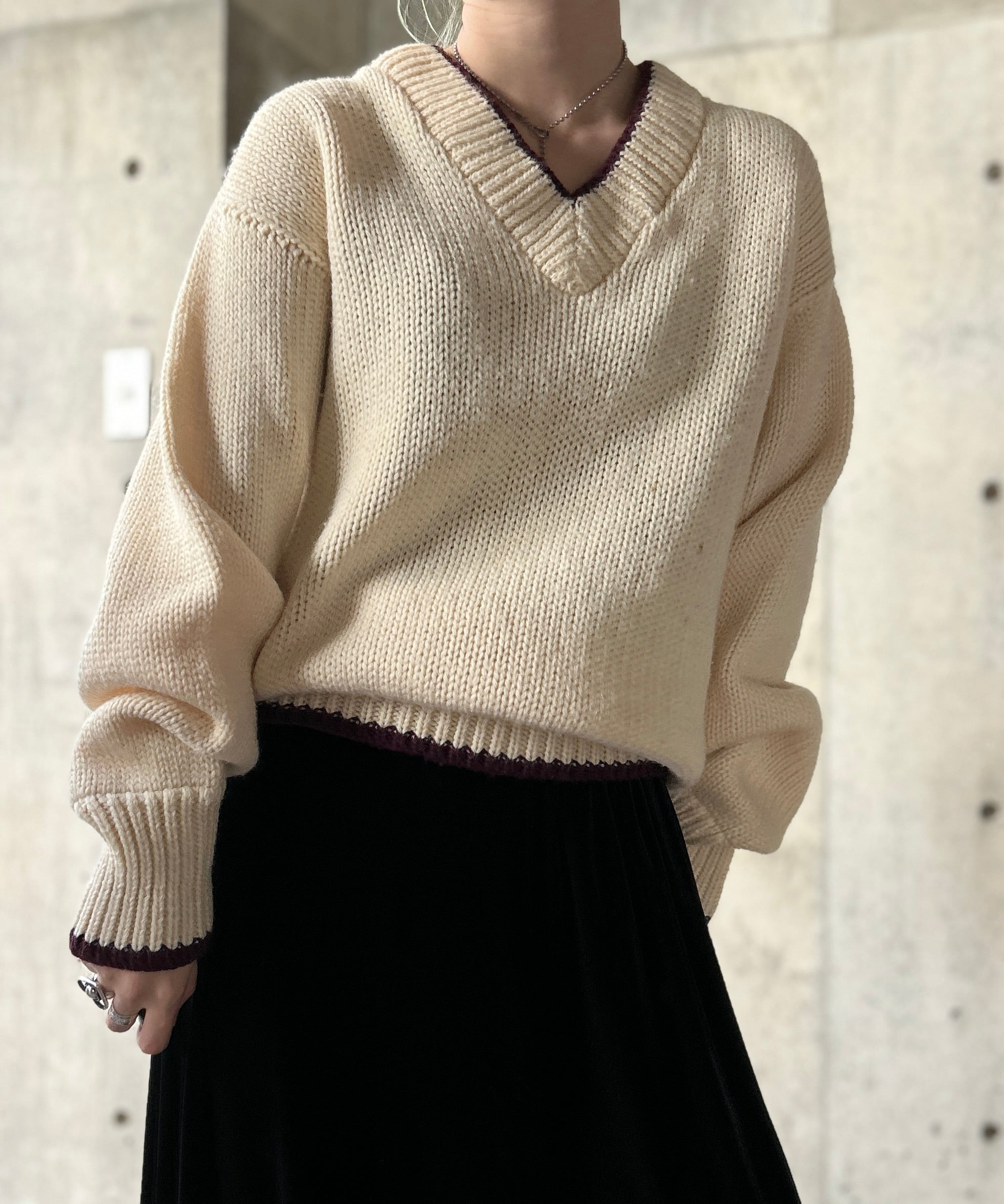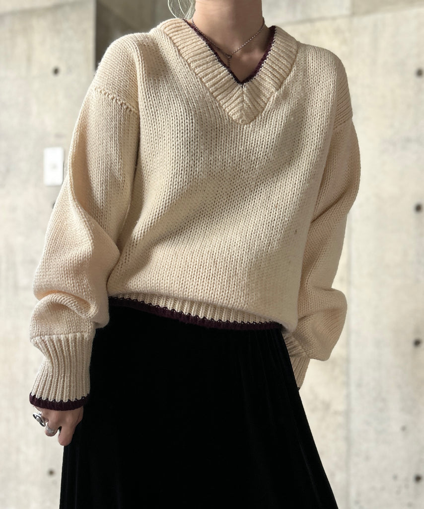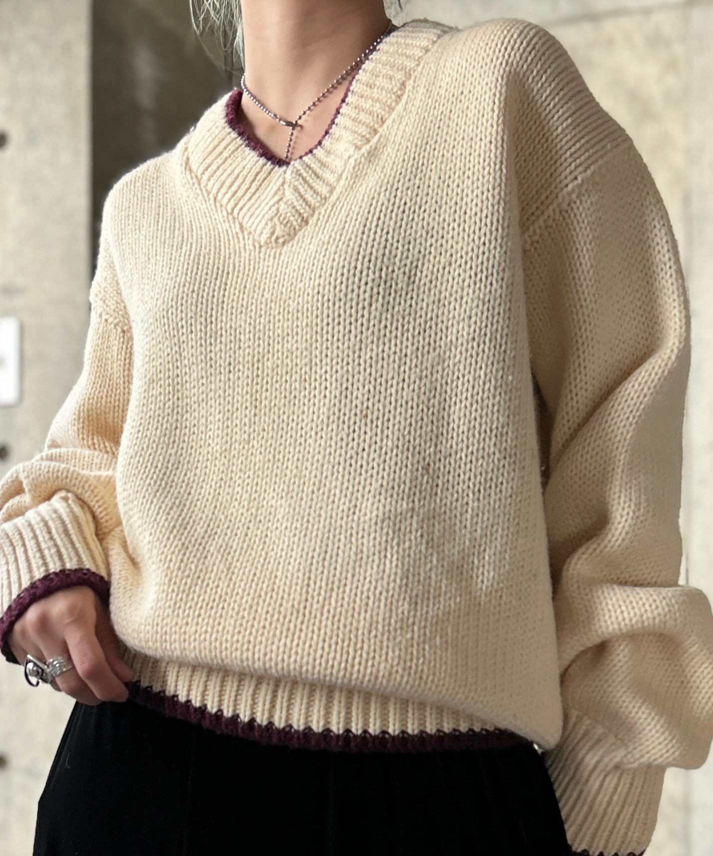 生成りベースに浅めのVネックデザインがメンズっぽい雰囲気◎