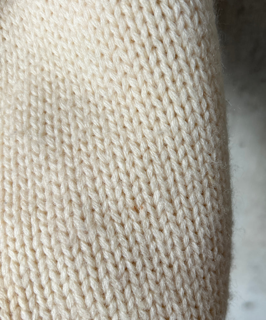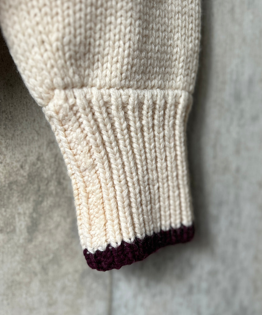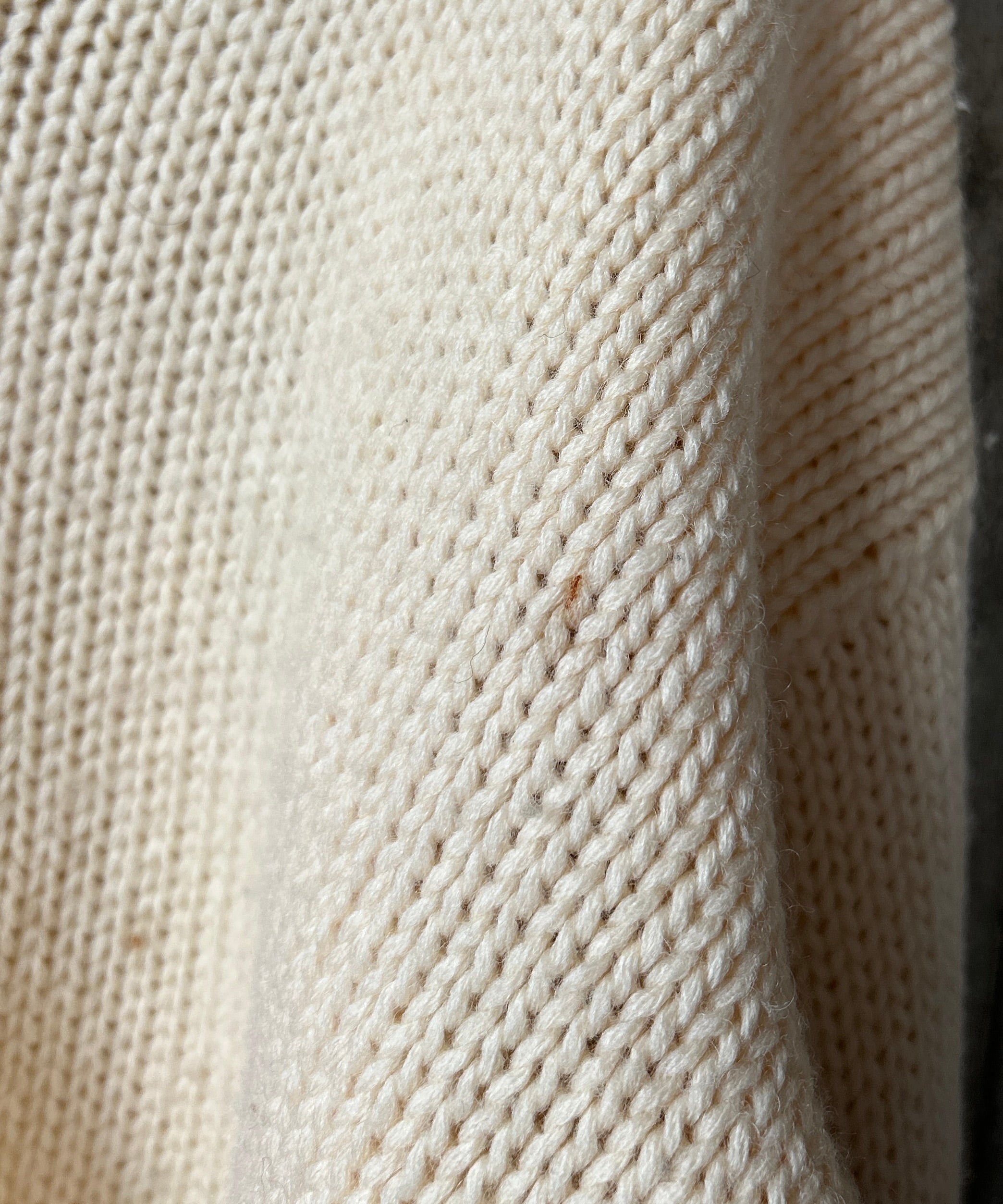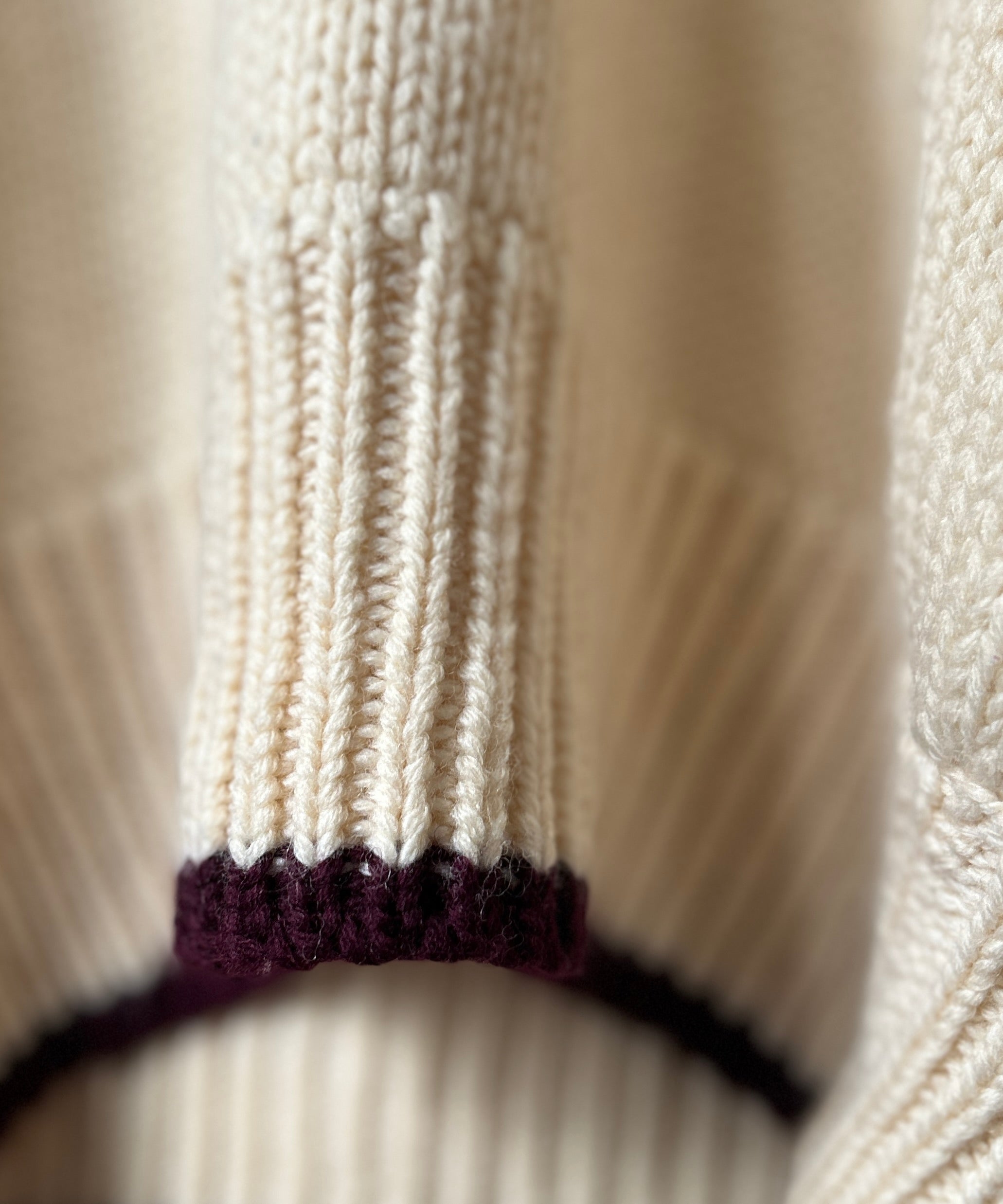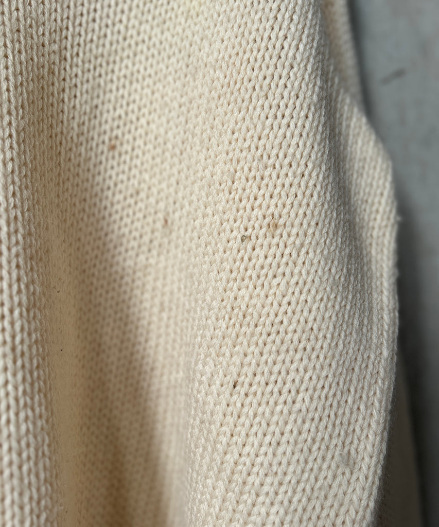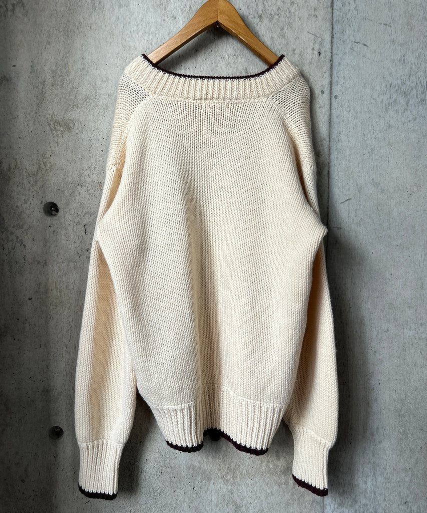 生成りベースに浅めのVネックデザインがメンズっぽい雰囲気◎