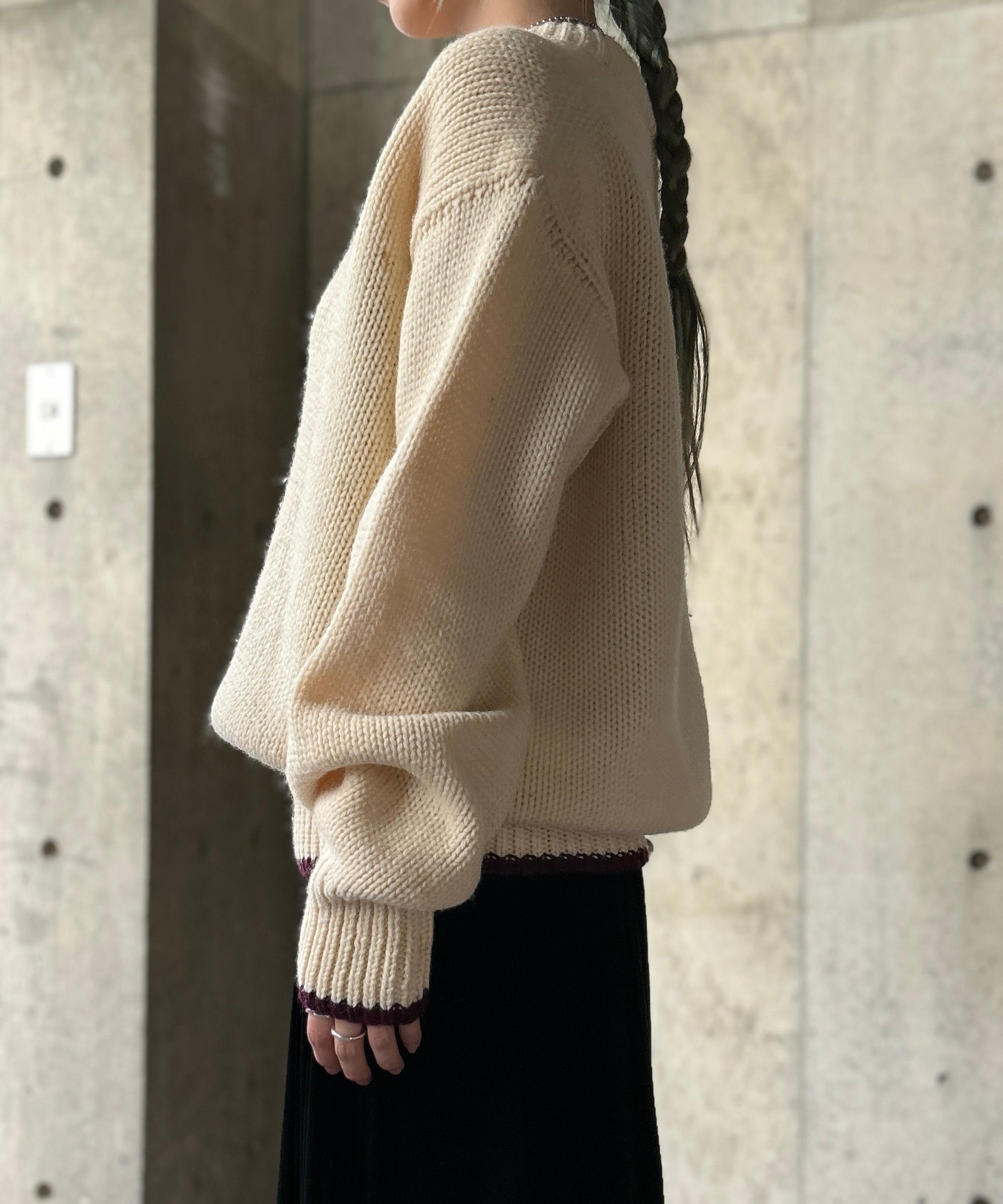 シンプルなデザインですが小技の効いた着回し力の高いニットです。