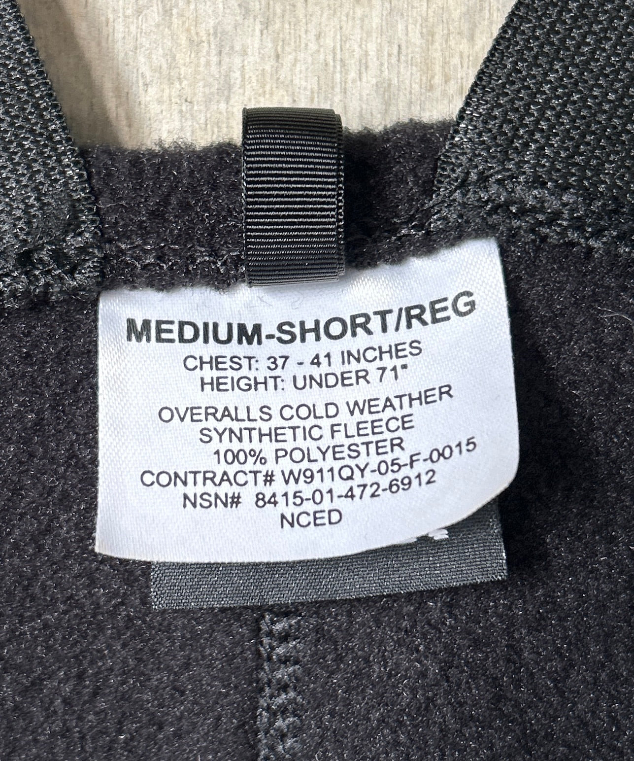 米軍の極寒冷地用被服システムECWCS(Extended Cold Weather Clothing System)として本来はインナーとして使うためのフリースオーバーオール。