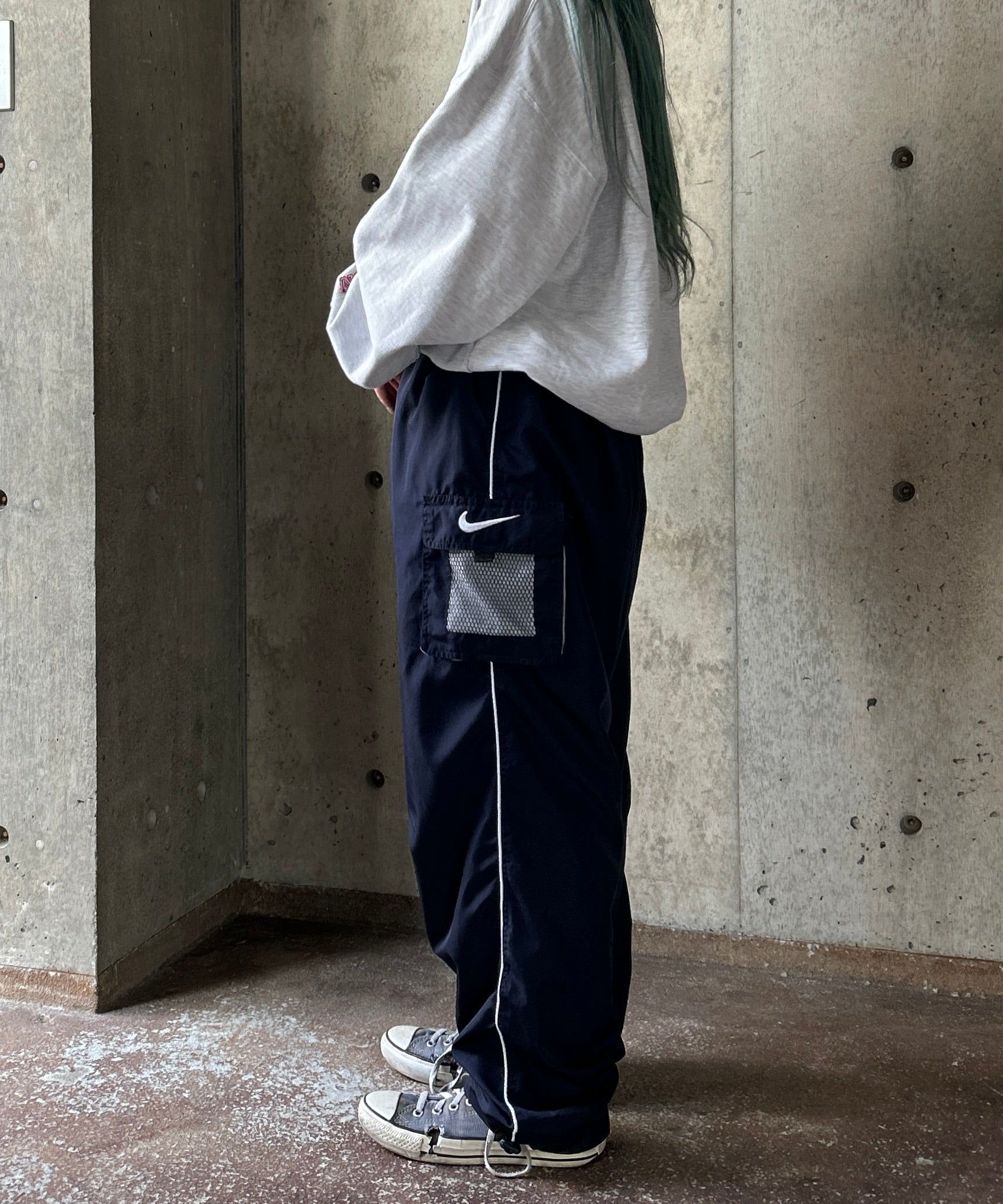 薄手めで柔らかさもあるナイロン生地、テカテカしすぎず取り入れやすいです◎