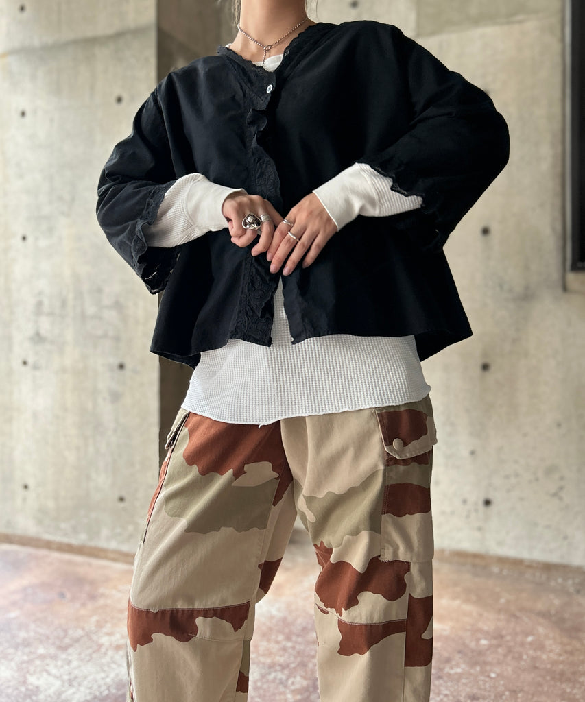 ボタンで前開きにできる仕様なので開けて羽織ったりしてもgood。