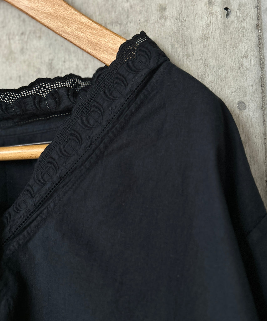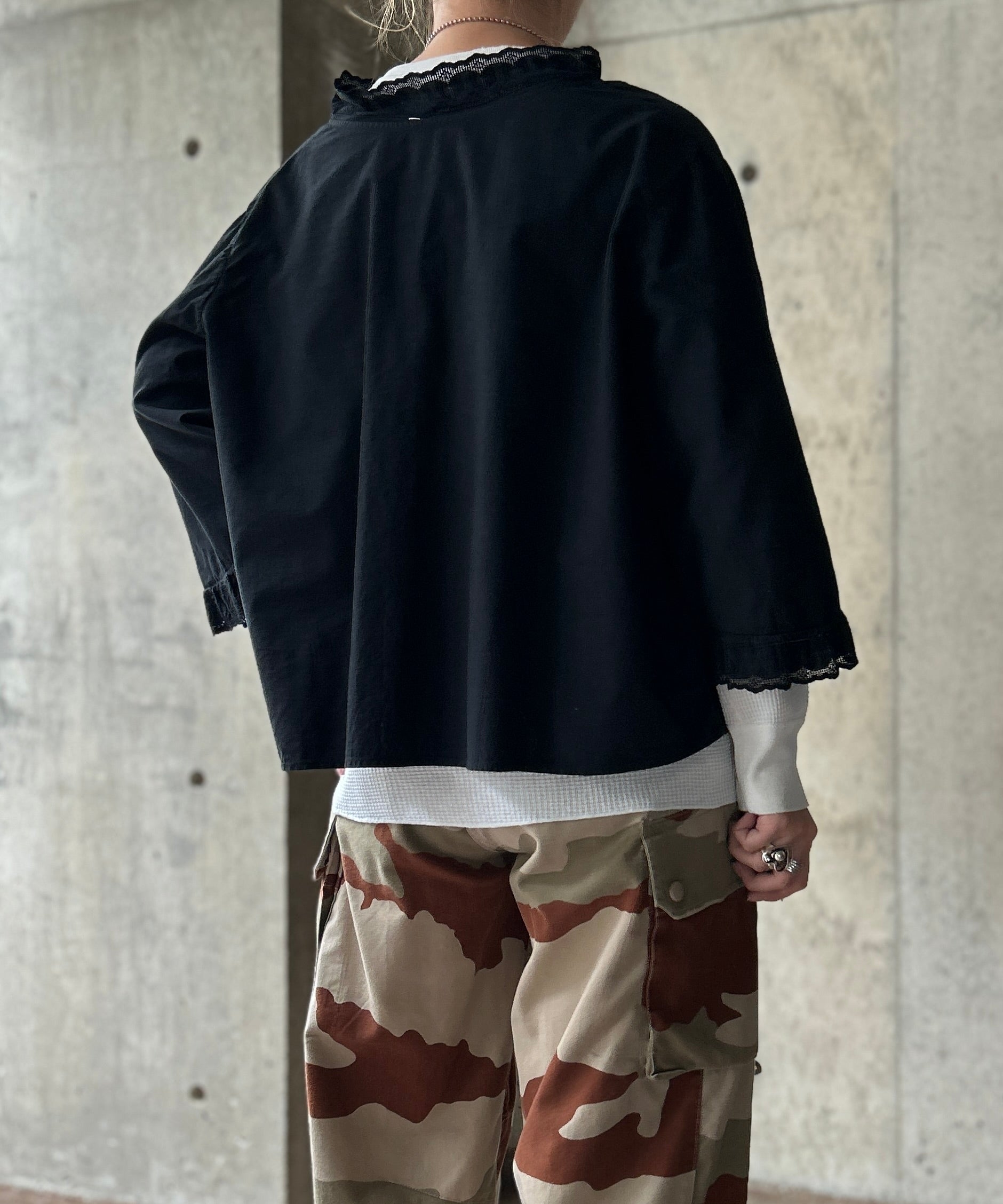 ネックが開いており、着丈の短めのシルエットが珍しい◎