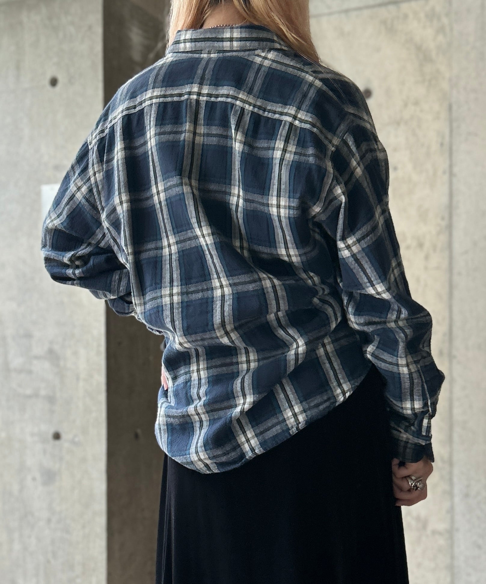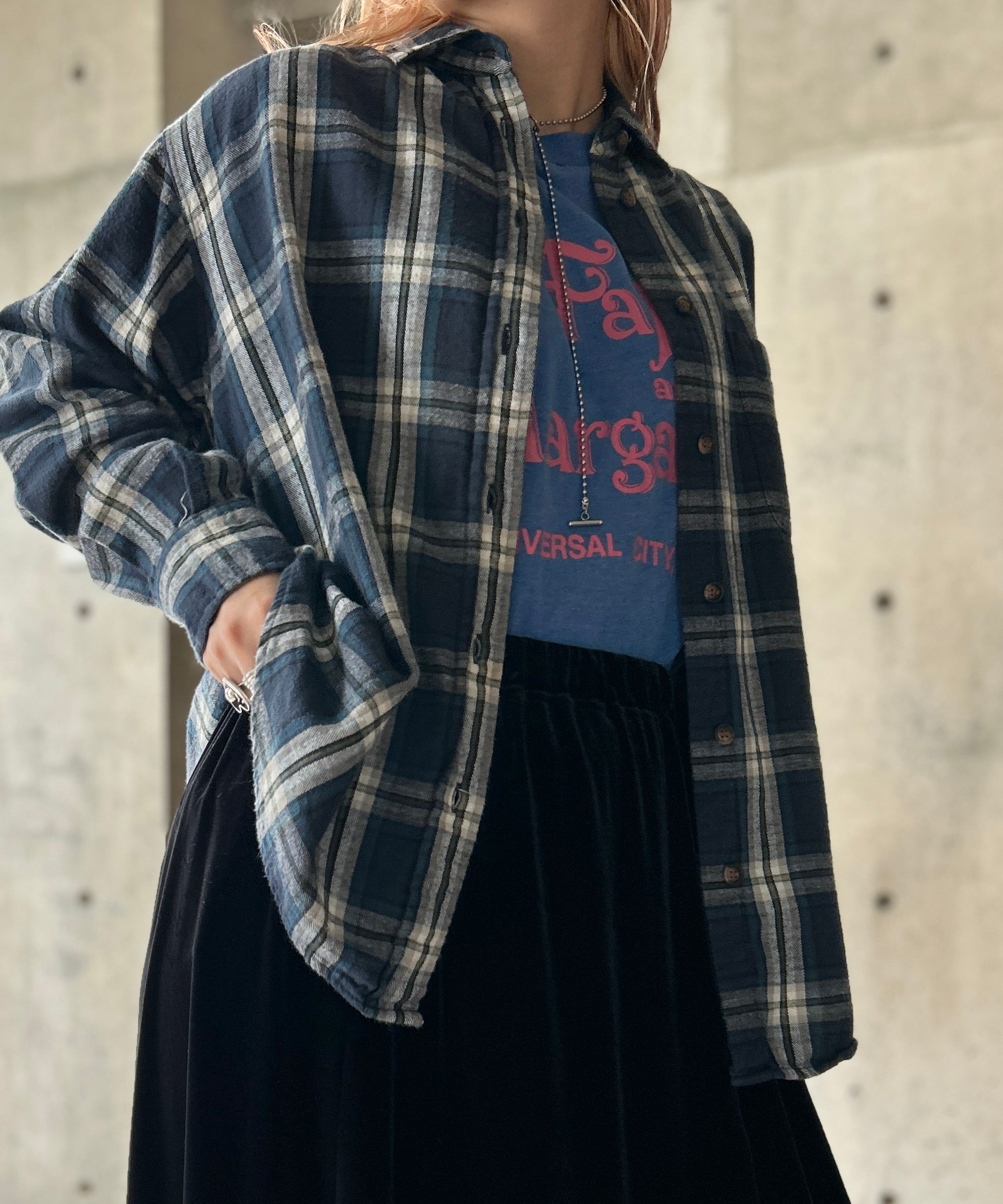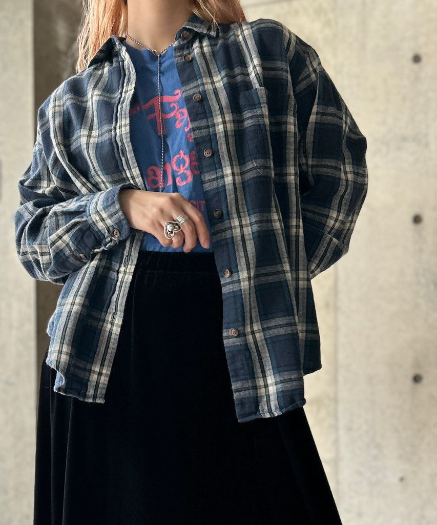 チェック柄のネルシャツ。