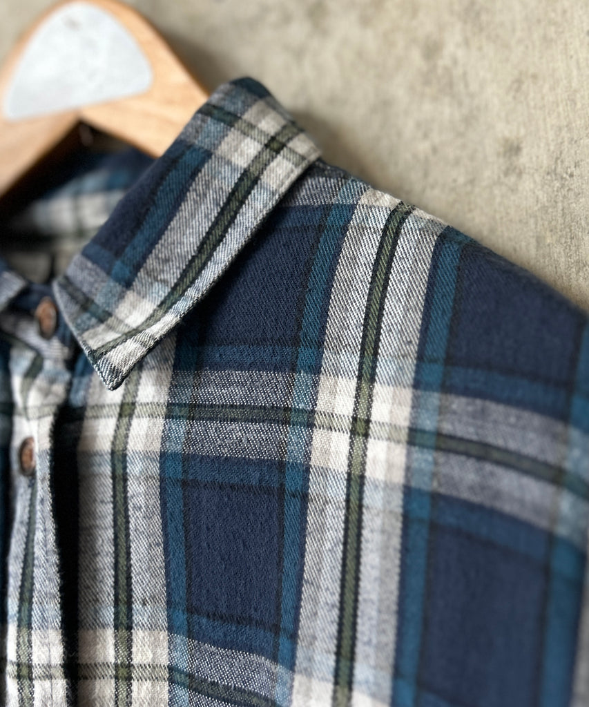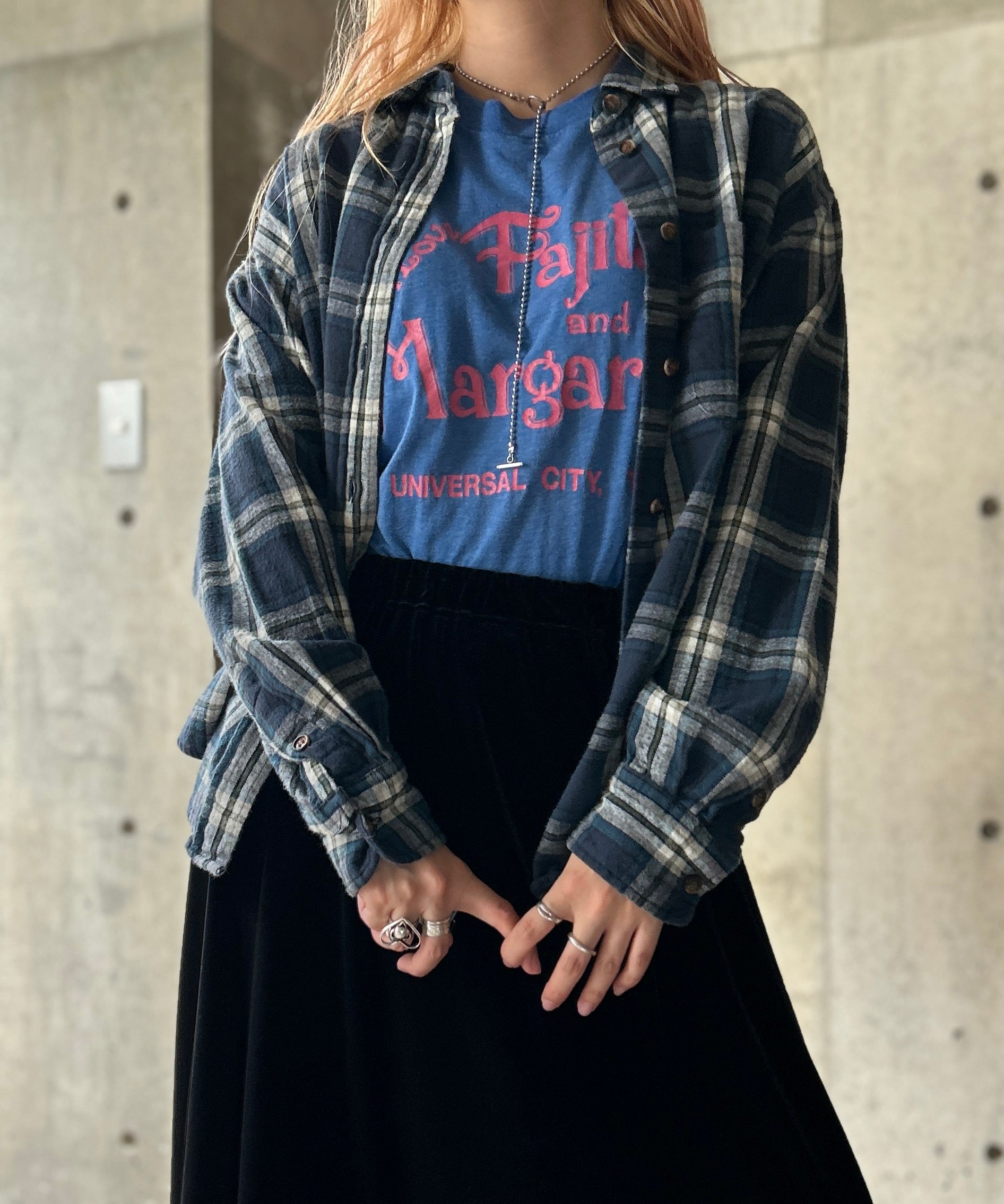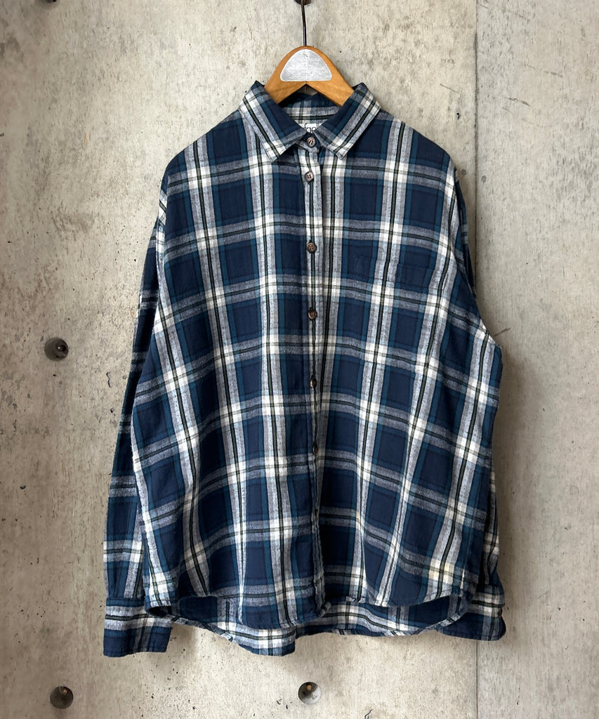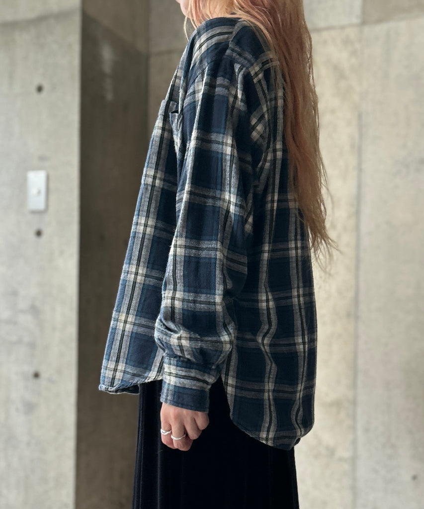 チェック柄のネルシャツ。