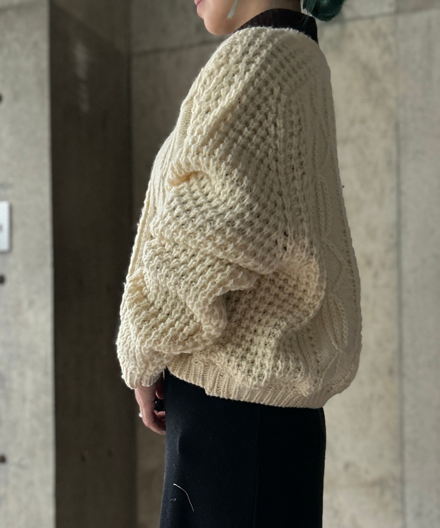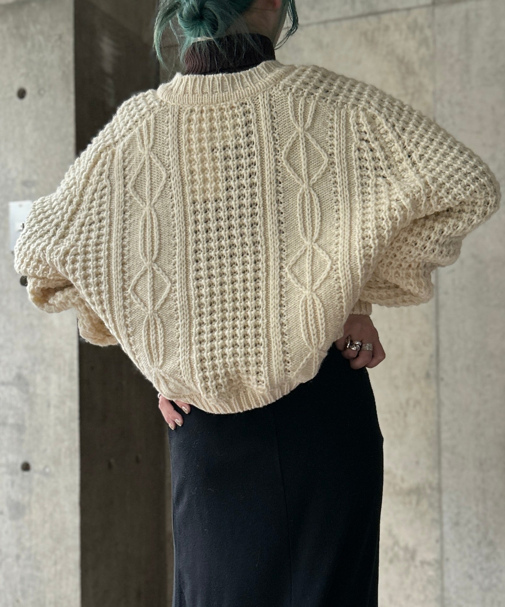 BIGニットのみ選んでショート丈にリメイクしているので、袖丈は長め。
