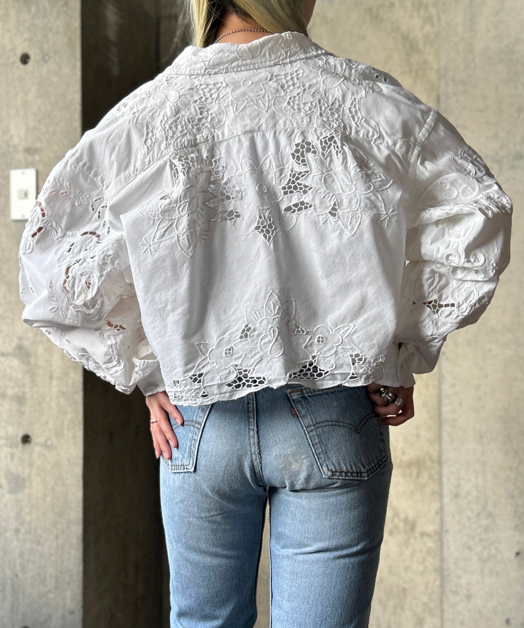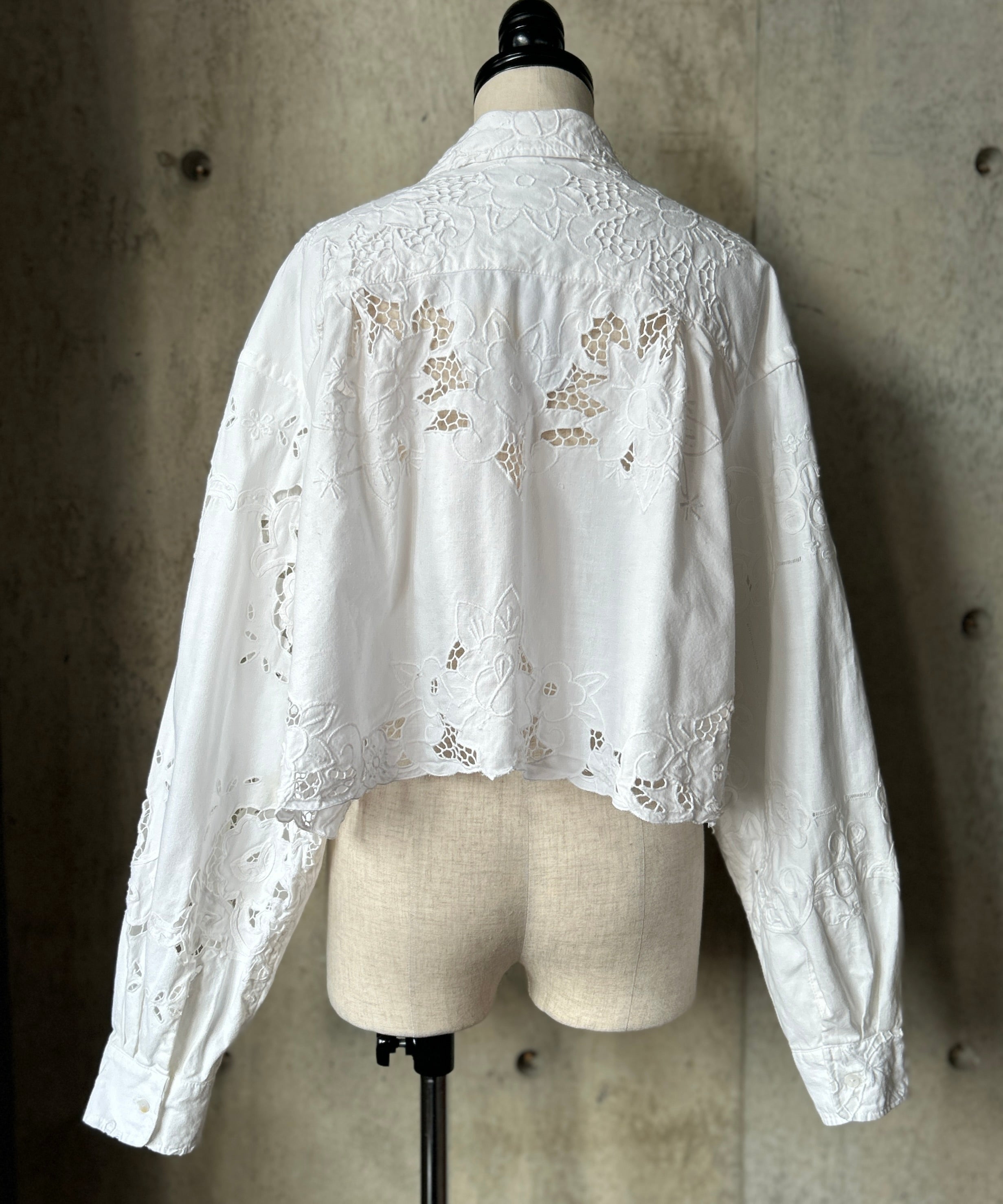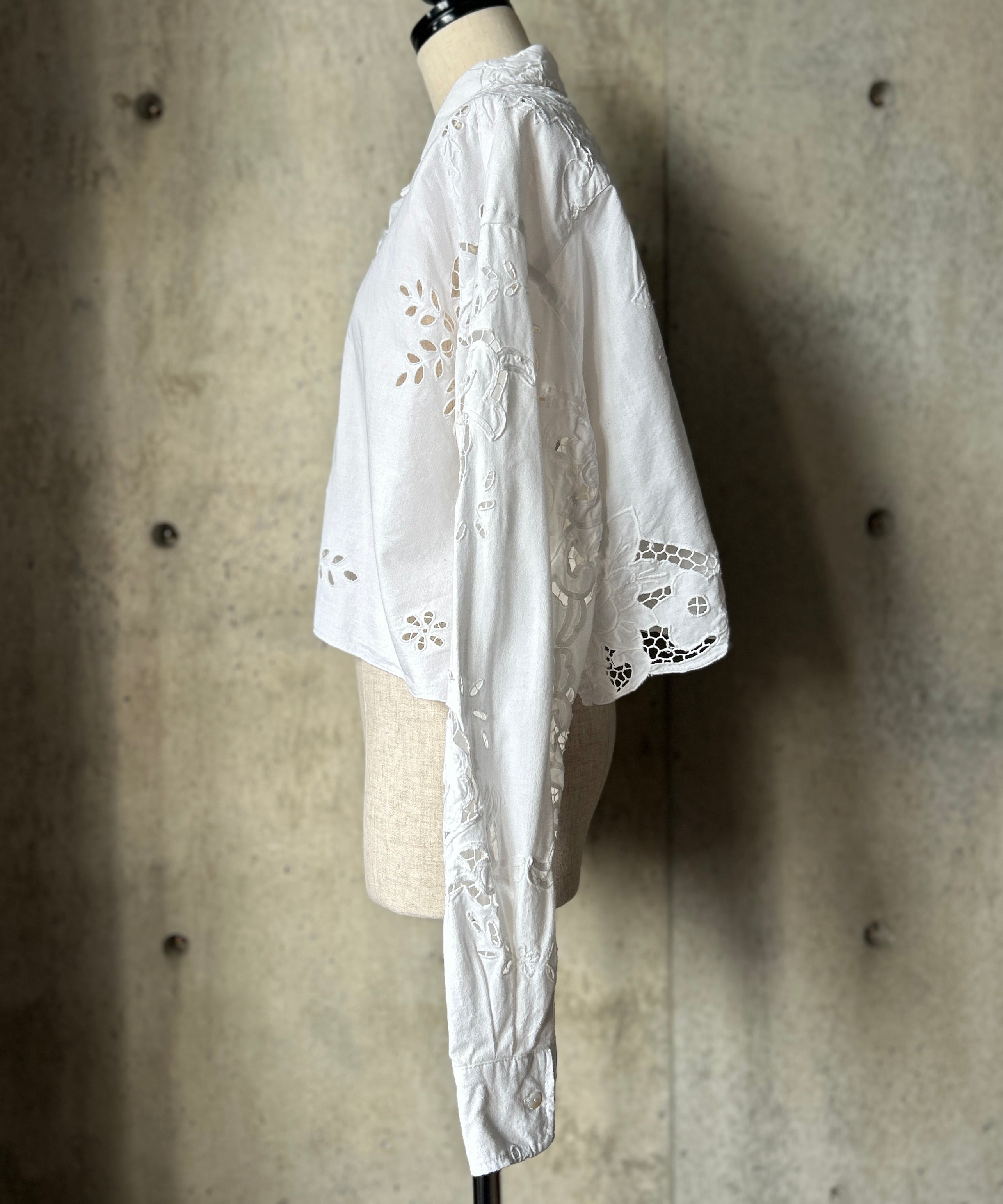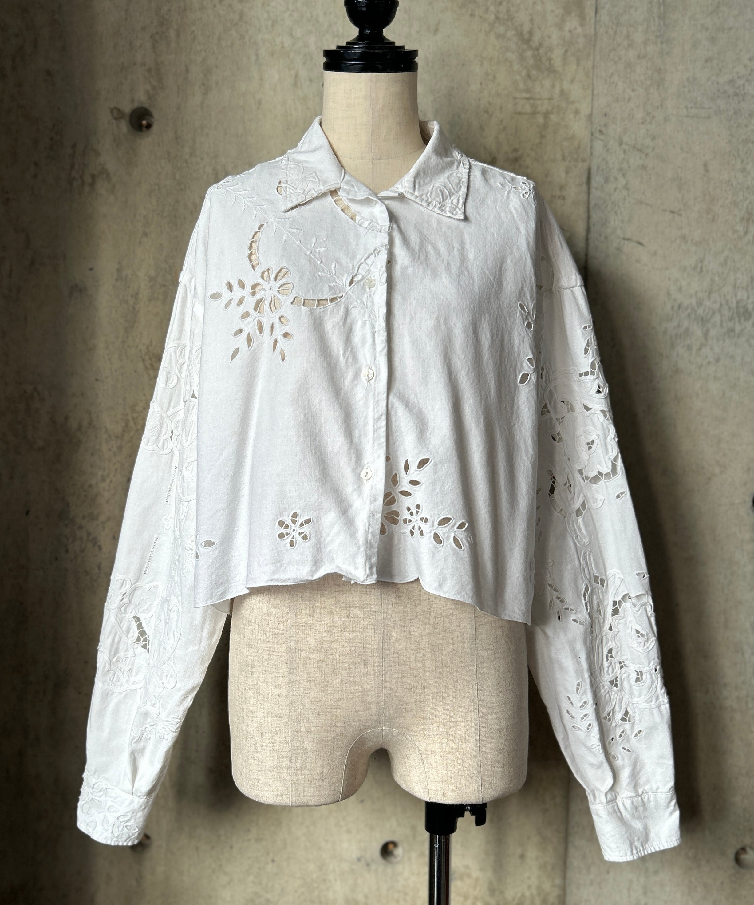 vintageのレース生地をショート丈のブラウスにリメイク。