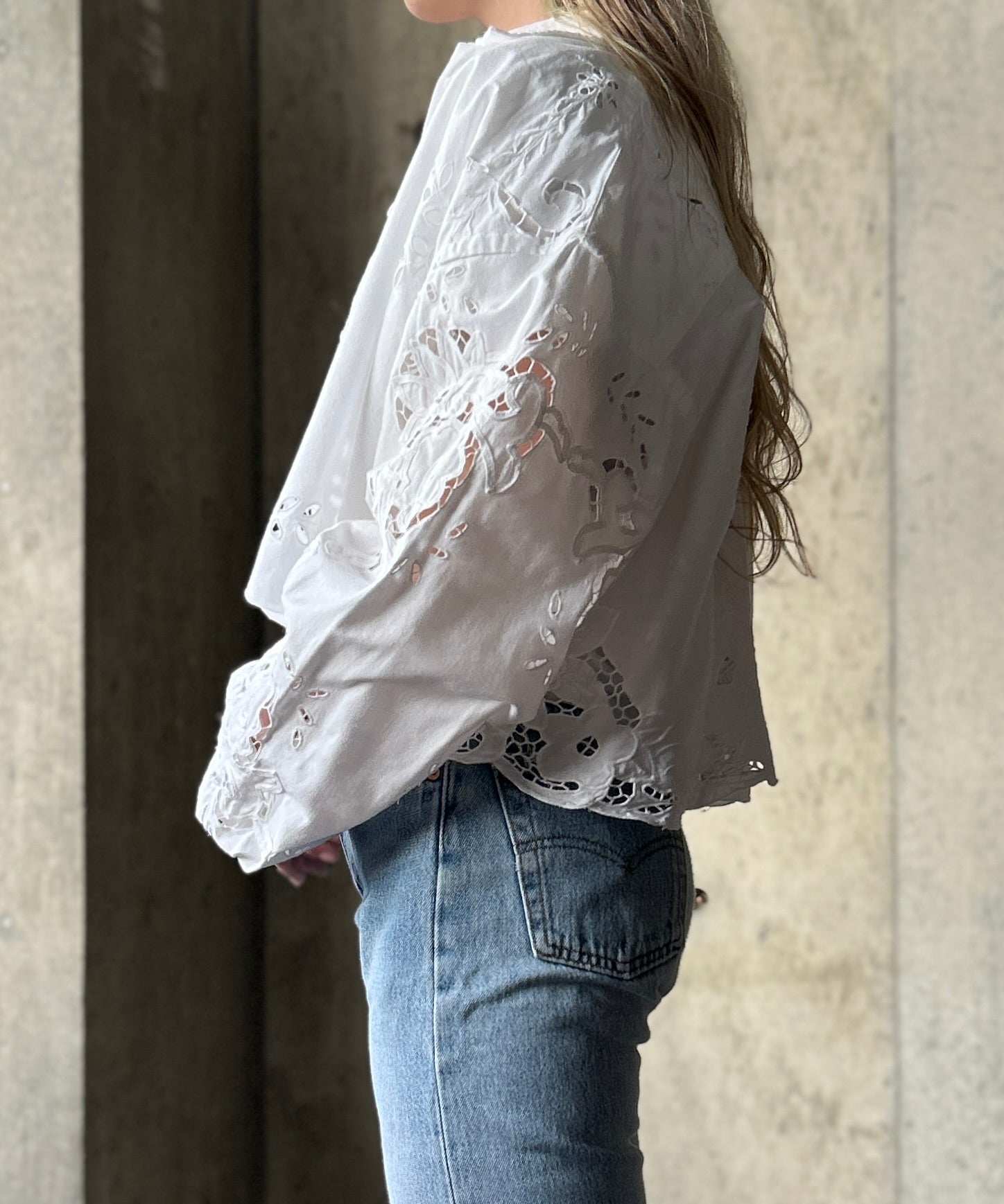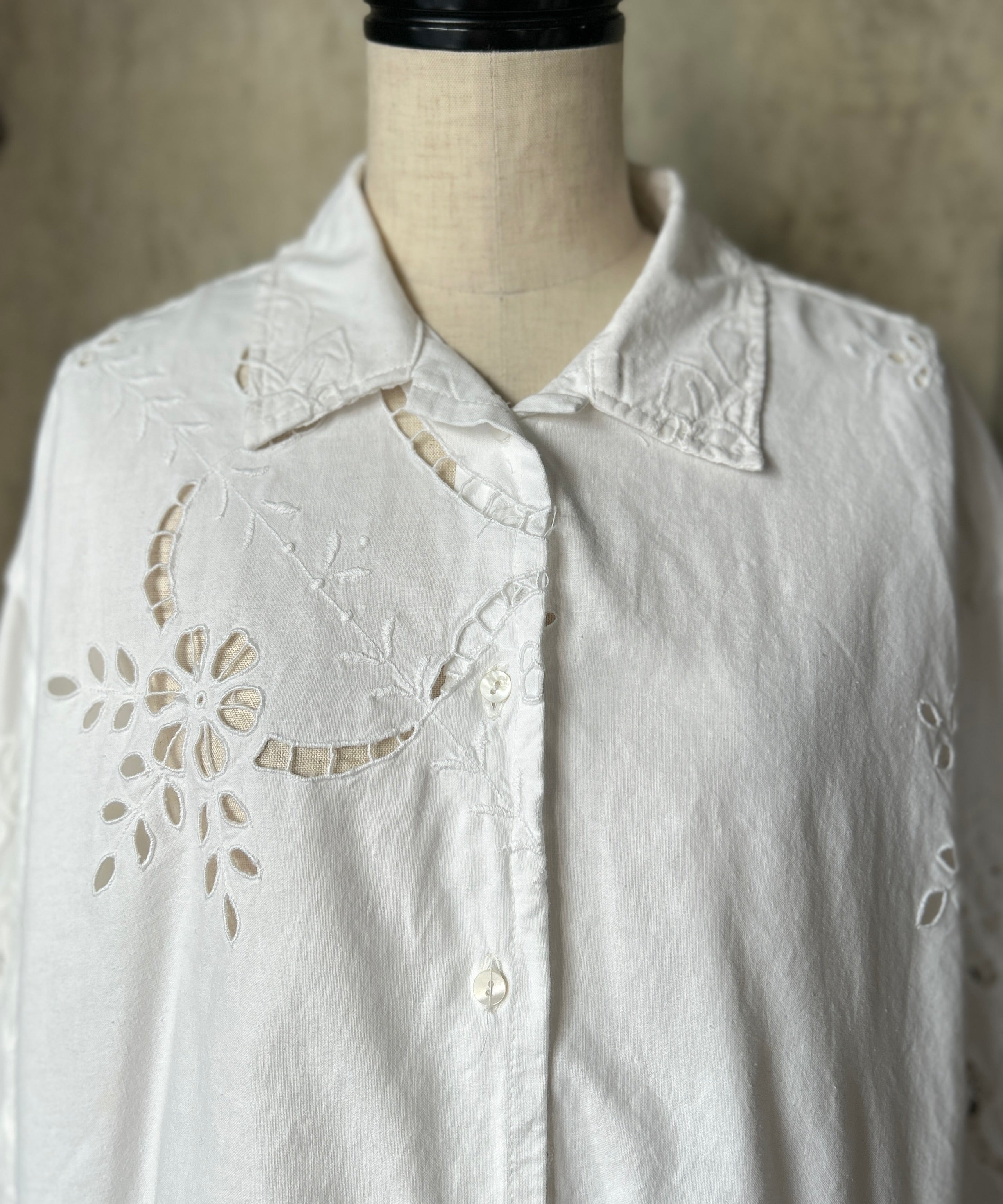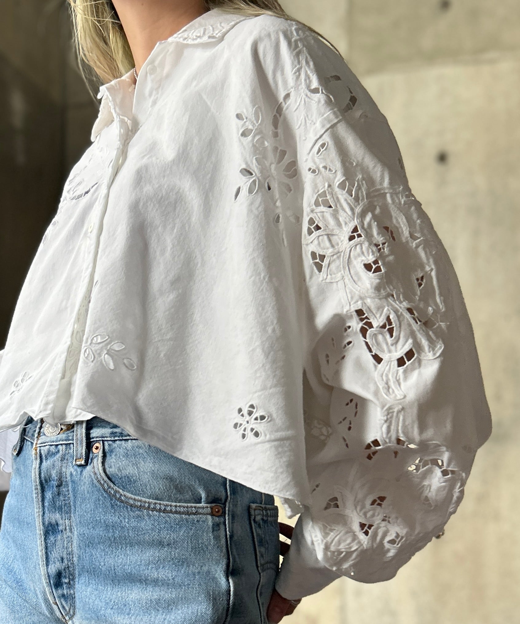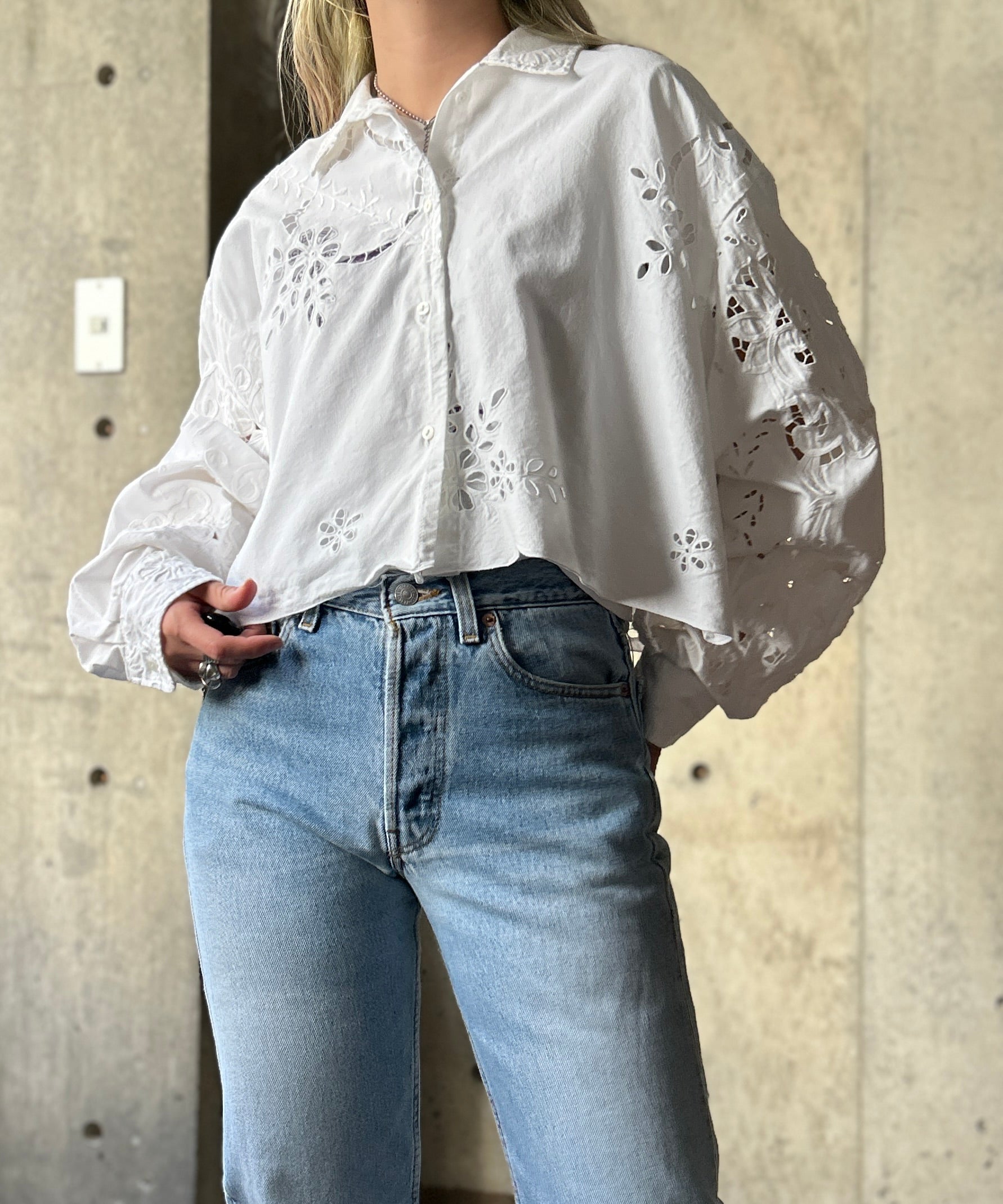 vintageのレース生地をショート丈のブラウスにリメイク。