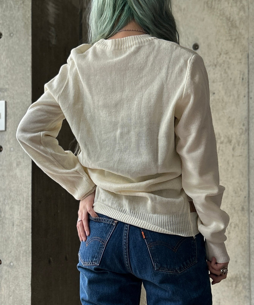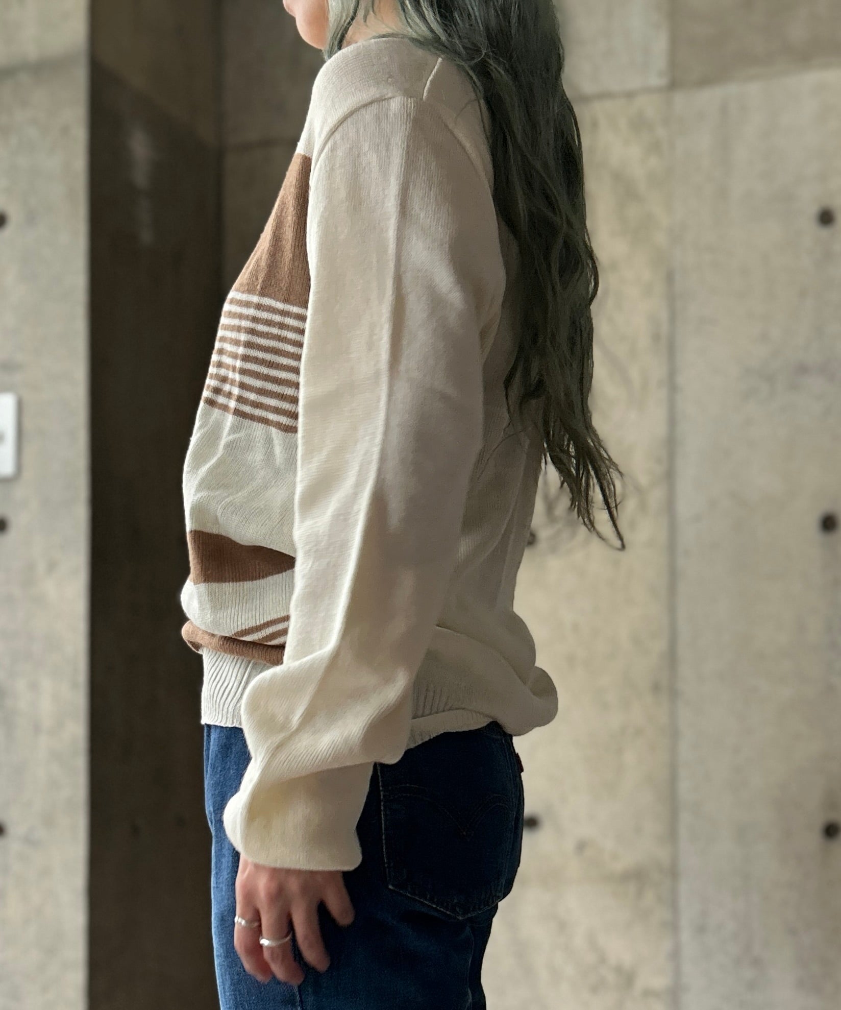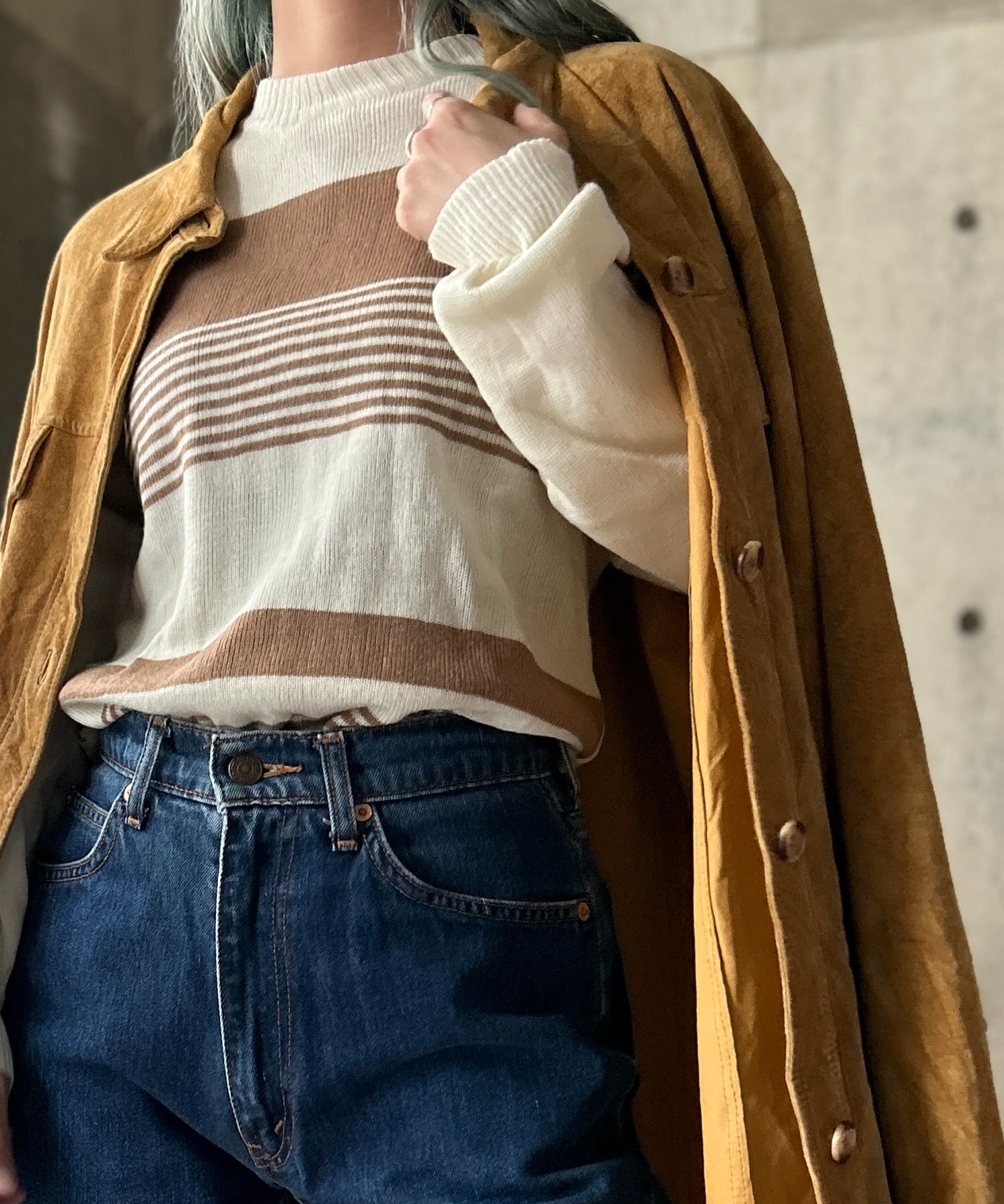 薄手のニットなのでジャケットの中に着たり、オーバーオールのインナー等